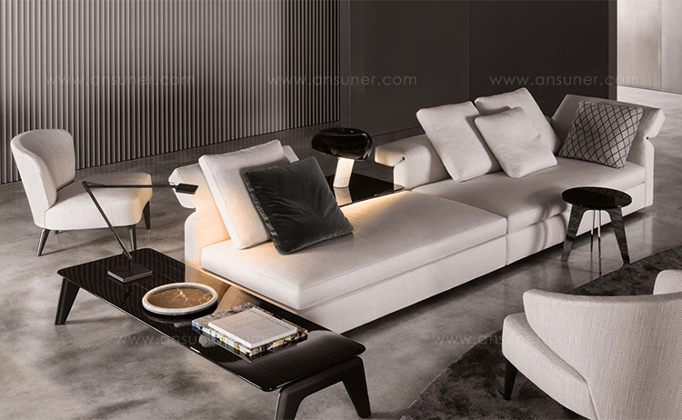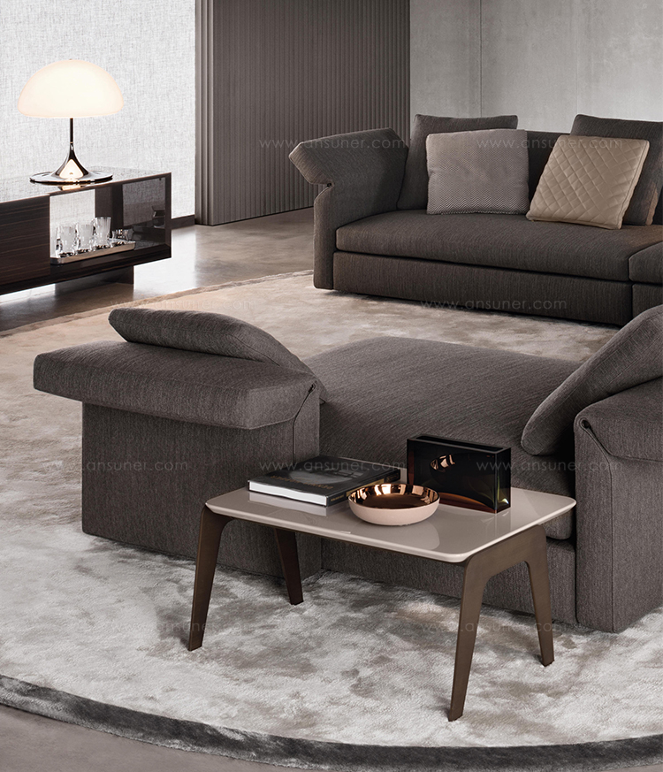 Kirk 木质底座茶几统一以矩形呈现,有三种长度可选。