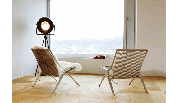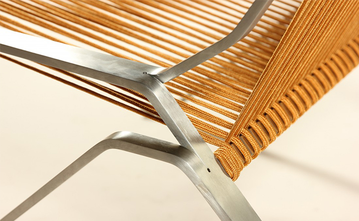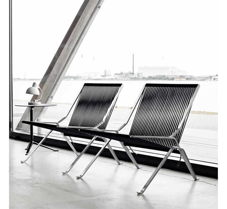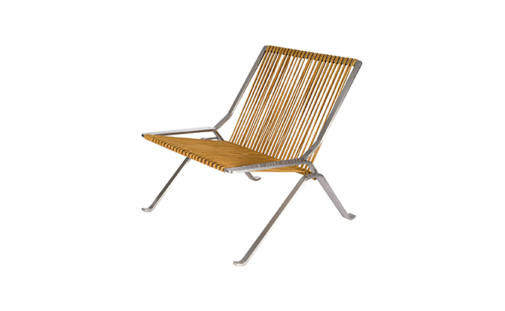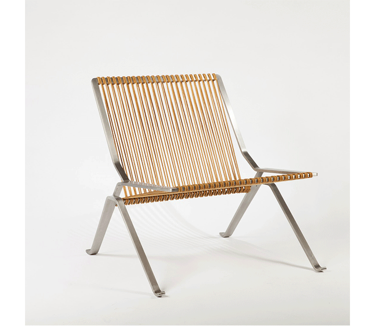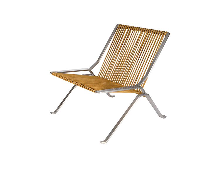 This PK25 chair is one of the PK series of chairs by Poul Kjaerholm. The designer considered steel to be a natural material with the same artistic finesse as wood. With the design of this chair, he exploited the natural strength and flexibility of steel and a corded seat. Our products are reproduced to the style of the original design. Our products are reproduced to the style of the original design.