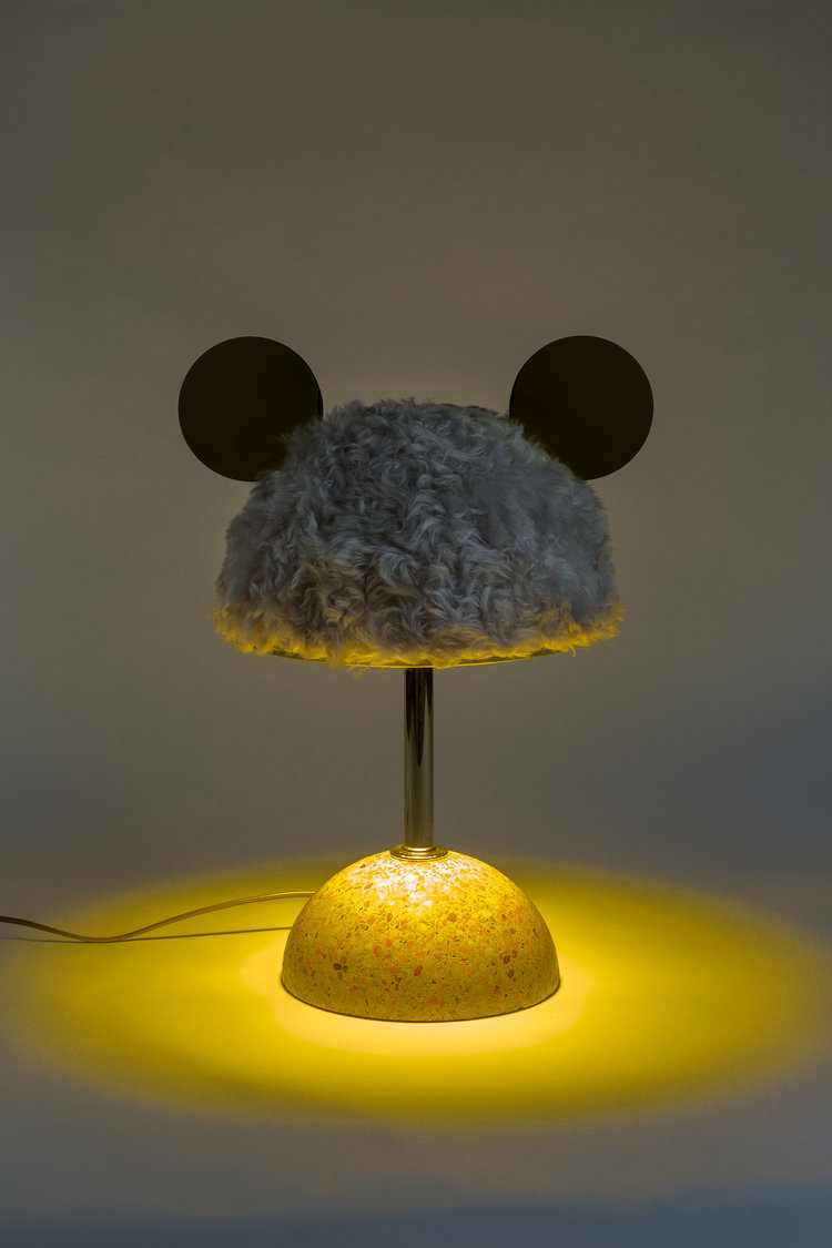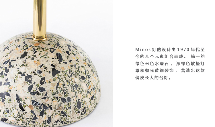 统一的绿色米色水磨石,深绿色软垫灯罩和抛光黄铜装饰,营造出这款俏皮长大的台灯。