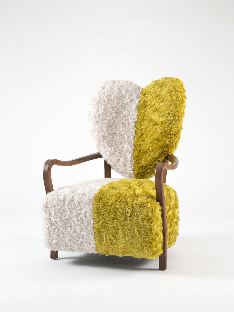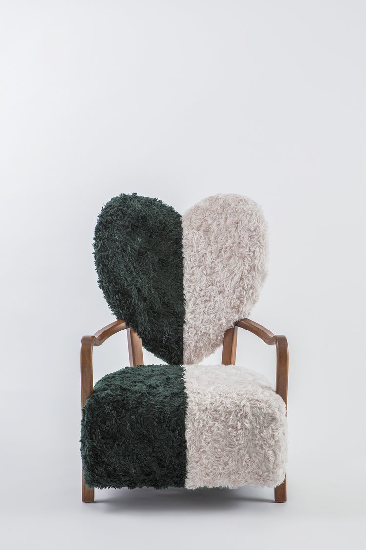 致力于所有破碎的心灵,UNI代表着灵魂的分离和统一。 森林绿和奶油的对比反映了任何两种生物之间的差异以及它们组合的美感。 在轮廓中看到,扶手椅看起来完全是绿色或完全奶油,取决于您的有利位置。