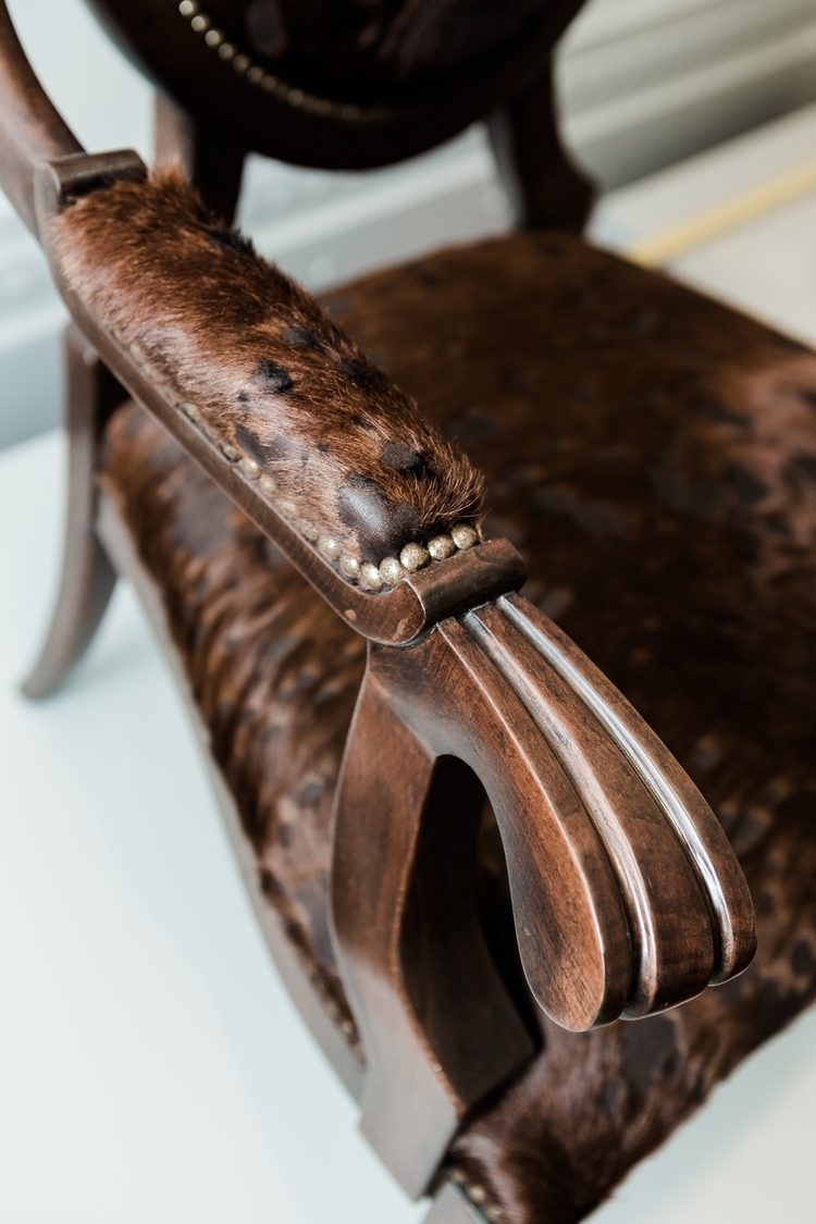 Hybrid系列的灵感来自于parahumans的神话。 这个anthro主席工会与它的主人合并为一体。 它完全是手工制作,选用了具有稀有图案的特殊皮革,并在木材上涂上了纹理漆面,以模仿鹿的外观并为使用者营造出一种动物感。