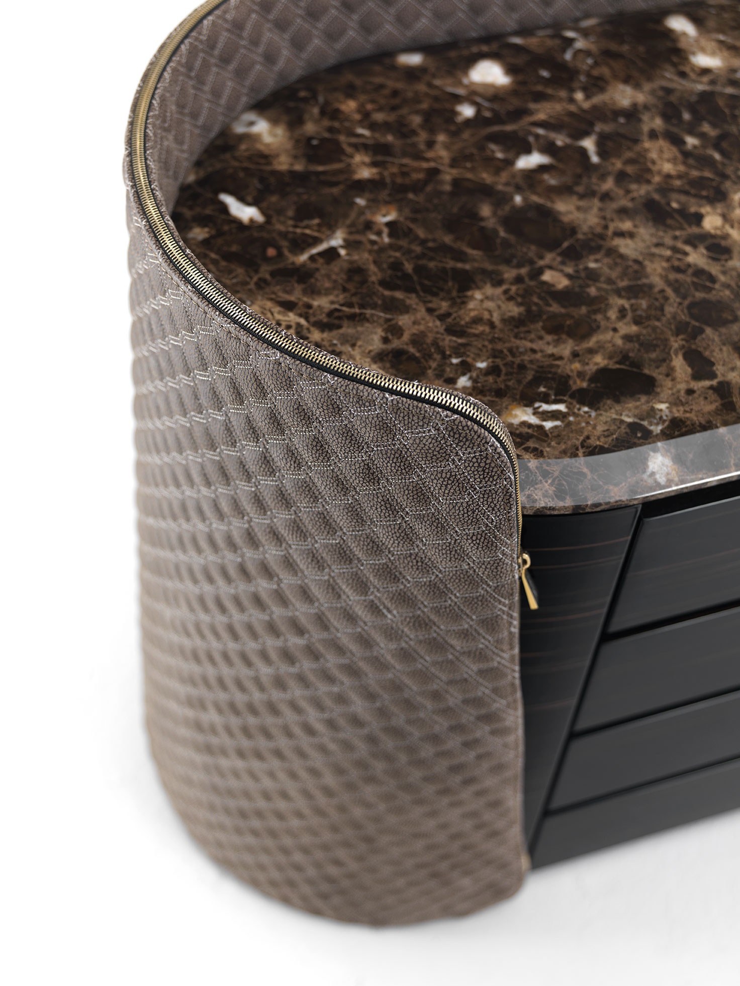 descrizionela组合结构覆盖在金属材料上绣着大理石在镜子或计划,使这些容器的圆形高设计的文章。