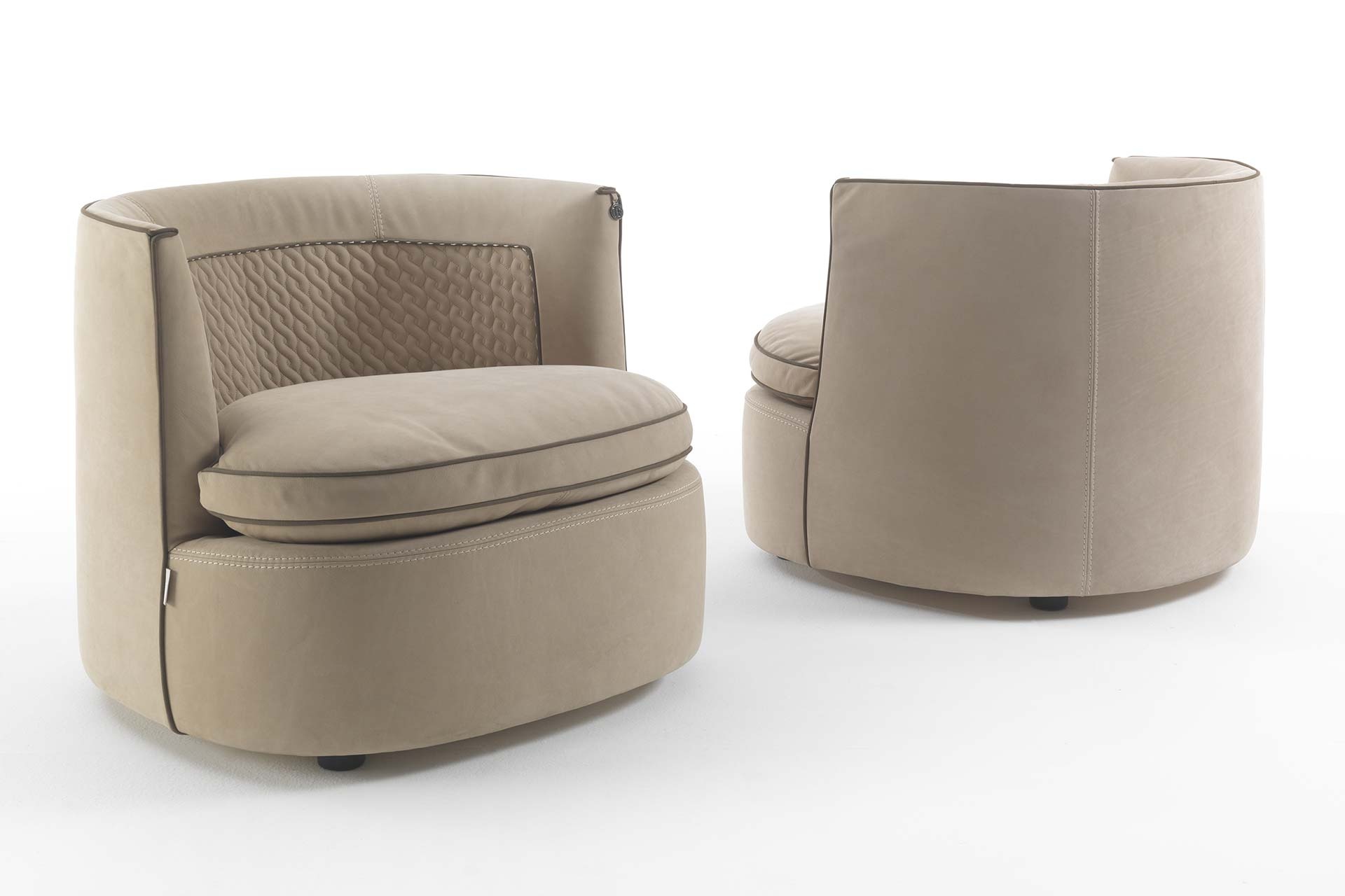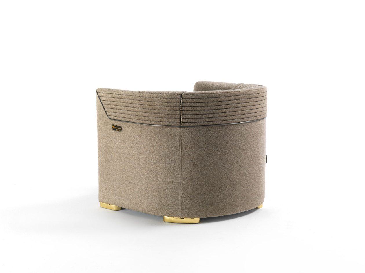 圆形形状让这看起来欢迎扶手椅适合放松和享受一个愉快的谈话