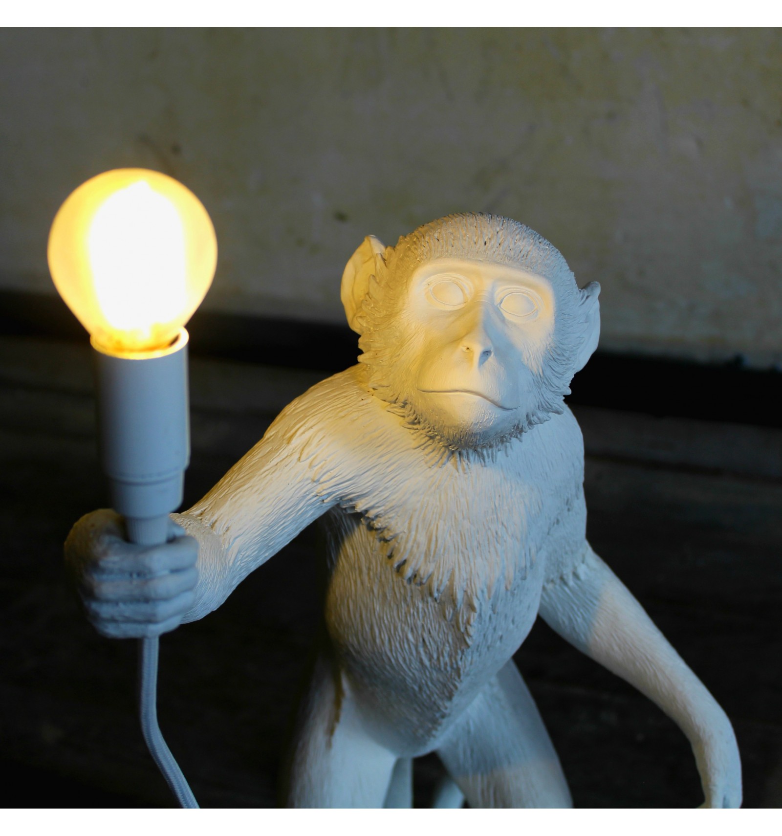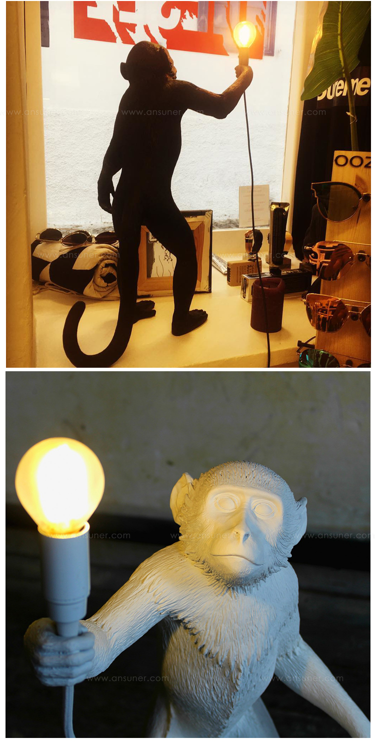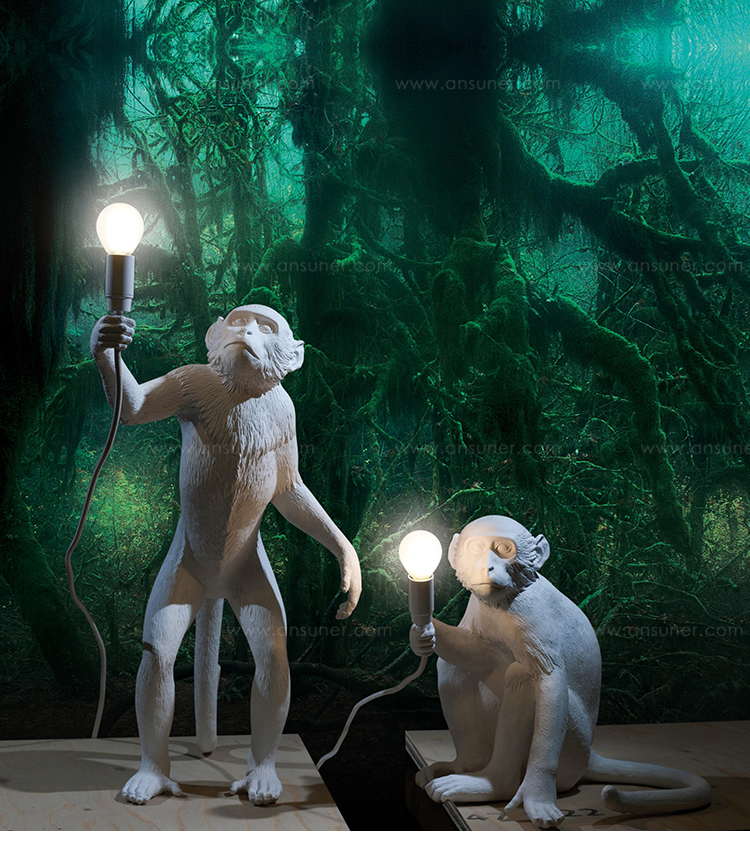 猴子很容易让人联想到人类,这就是为什么经常在雕塑作品中提到它们。在Seletti的版本中,他们溜进了我们的房子,觉得他们是在偷那些灯泡,其实是为我们服务,