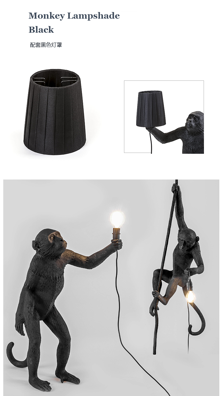 这款猴灯由树脂制成,手工完成,描绘了一只猴子在三个不同的位置,一边抓着一个LED灯泡,一边探索周围的环境,一种新的、替代的照明方式。