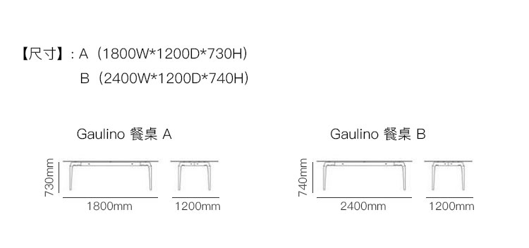 Gaulino 餐桌 系列尺寸/示意图