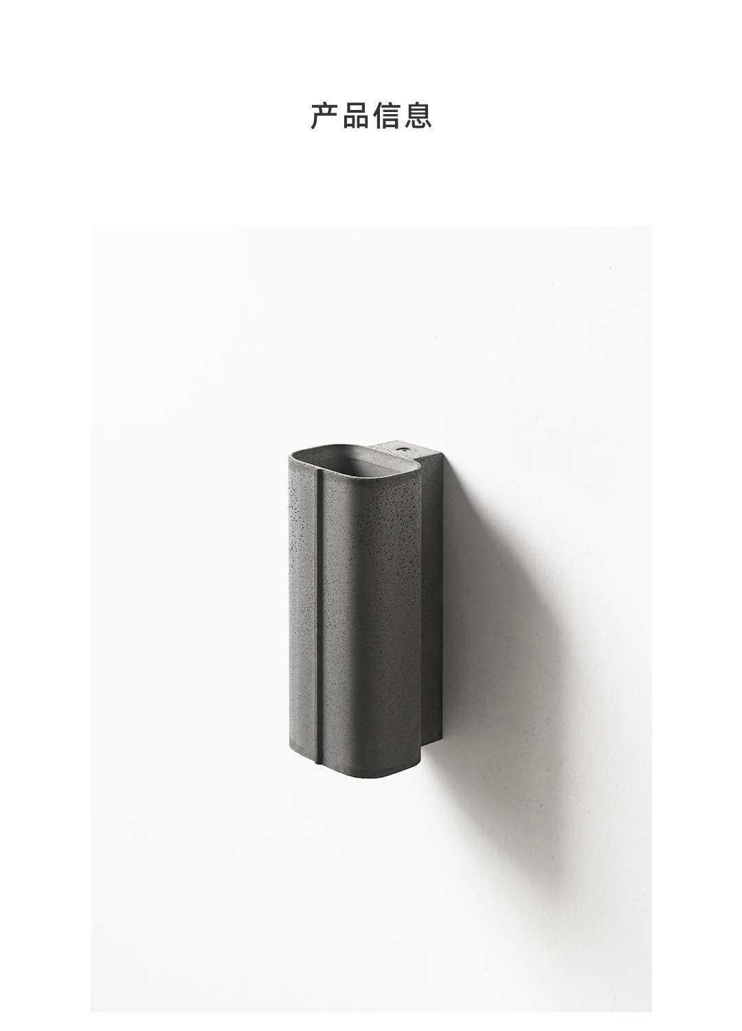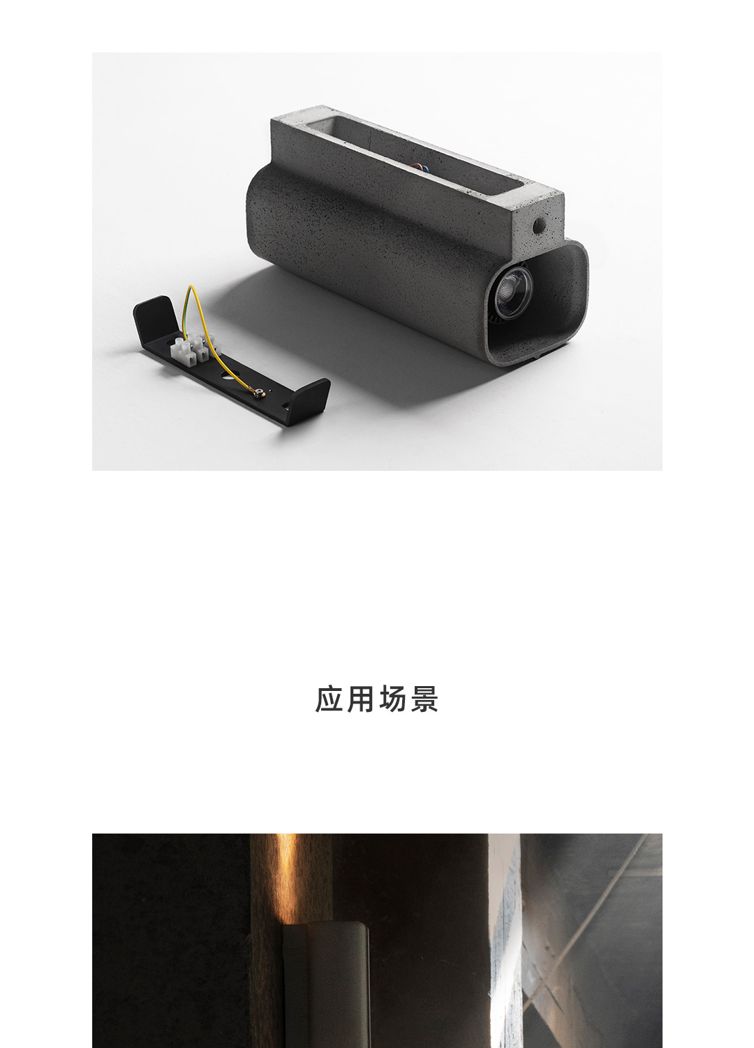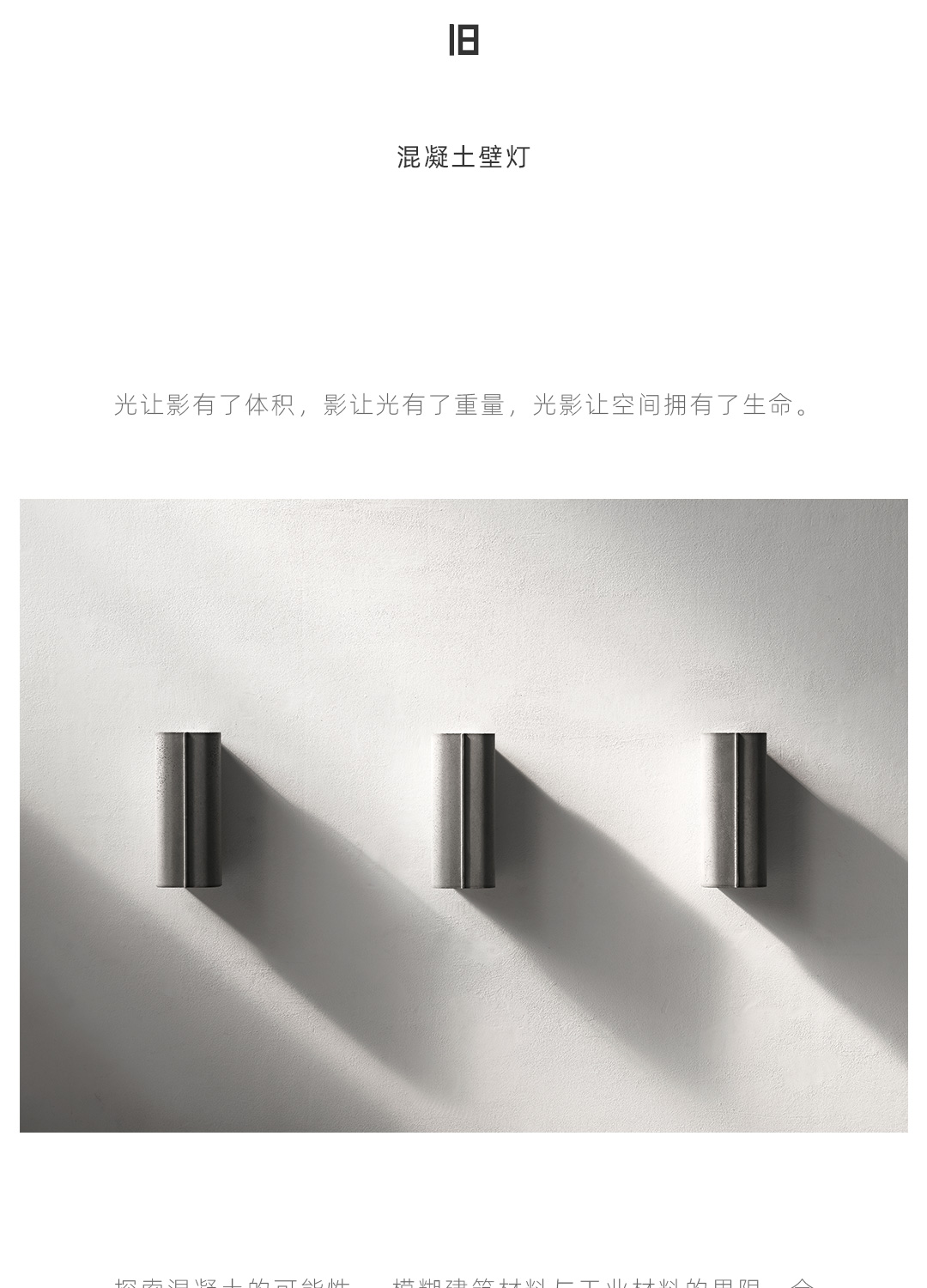 探索混凝土的可能性,模糊建筑材料与工业材料的界限。全混凝土壁灯,产品与建筑融为一体,根植于空间,是光影的载体,是建筑的延伸。