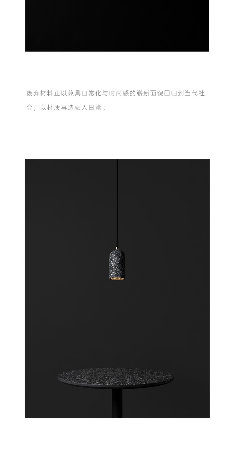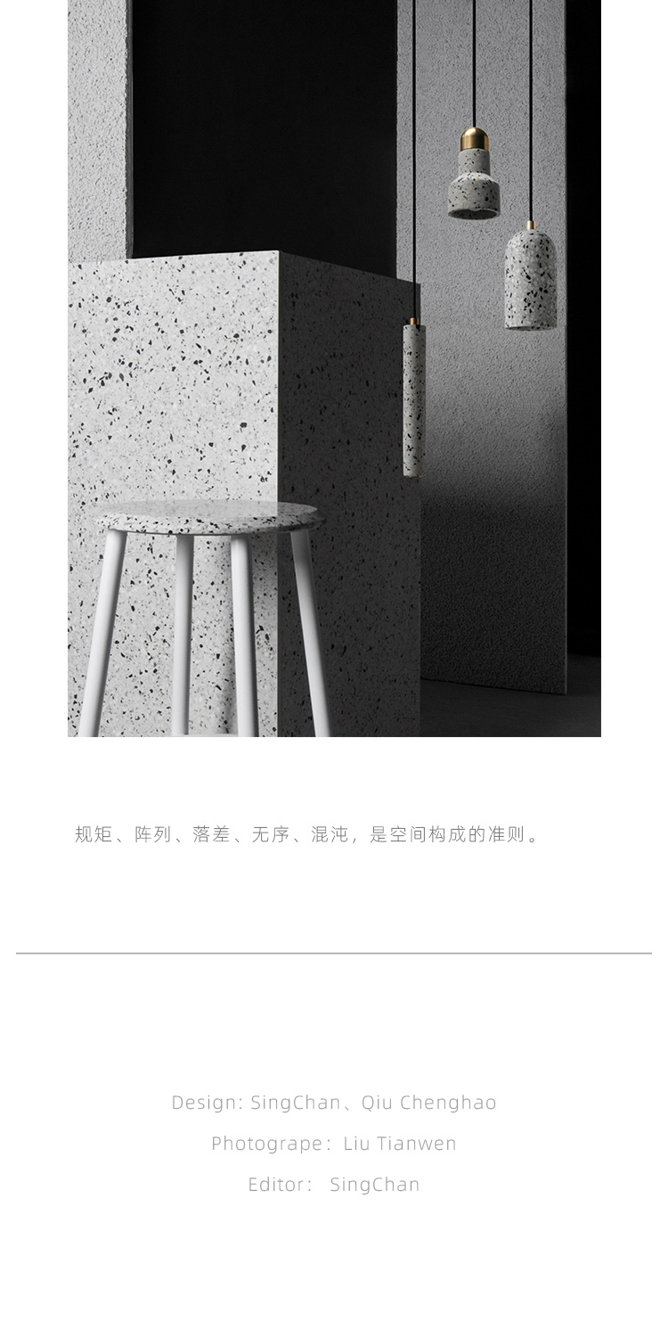 以材质再生为基本手段的水磨石系列,将陶瓷废渣再生成简洁形态的日常性家具,以衍生产业的形式回归到大众层面的使用中。 中国佛山,这片拥有全球最大最成熟的陶瓷产业链和产业集群的建筑陶瓷工厂的土地,承载着每年400万吨陶瓷废弃物带来的环境污染。 以材质再生融入日常,不仅是激发商业价值的大胆尝试,是环保理念的日常化实践,更是对自我尊严的基本坚守和追求,我们探寻陶瓷跨越地域局限的一种当代突破!
