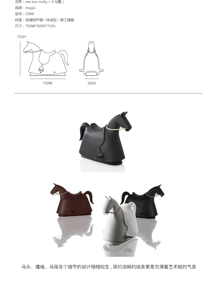马头、缰绳、马尾各个细节的设计栩栩如生,简约流畅的线条更是充满着艺术般的气息