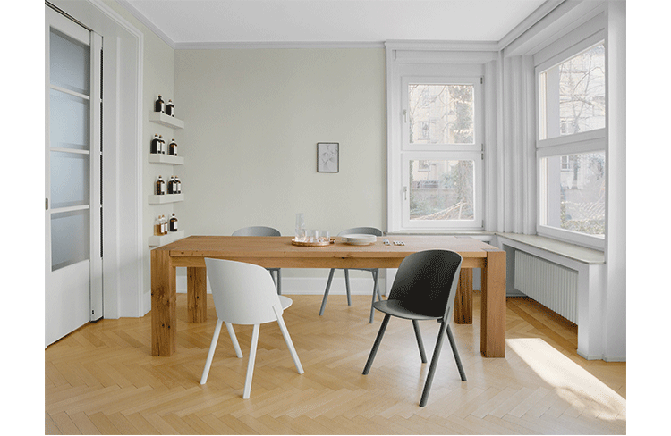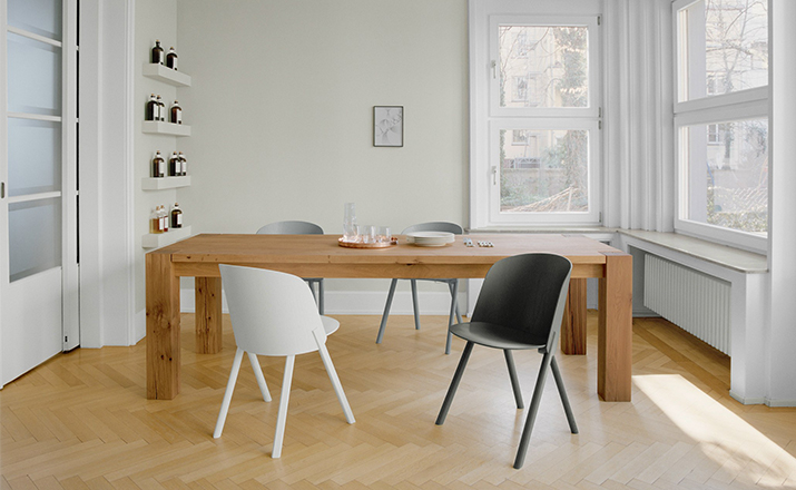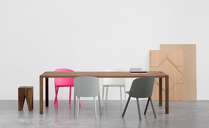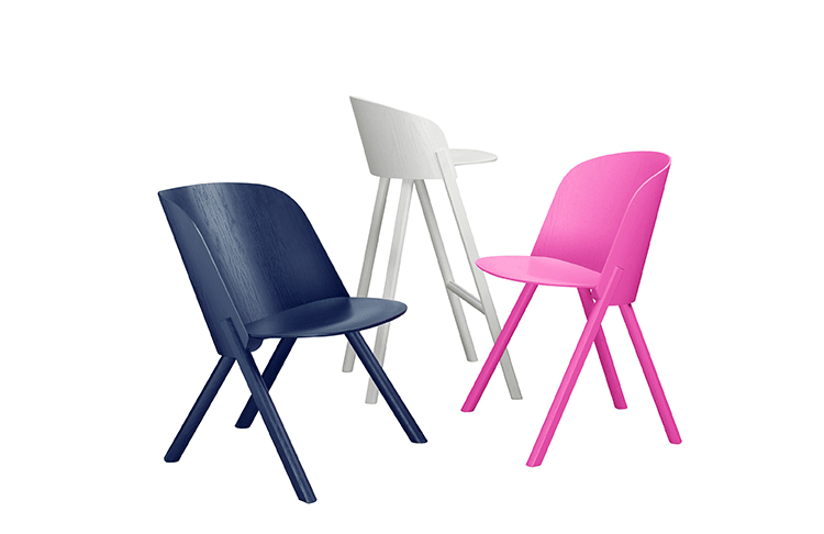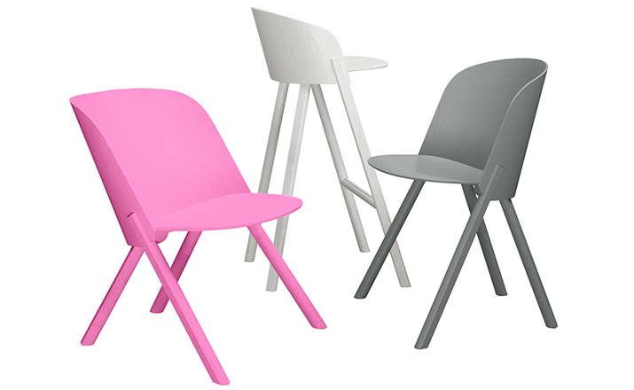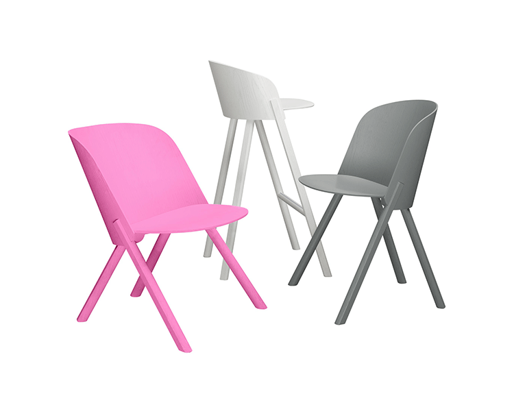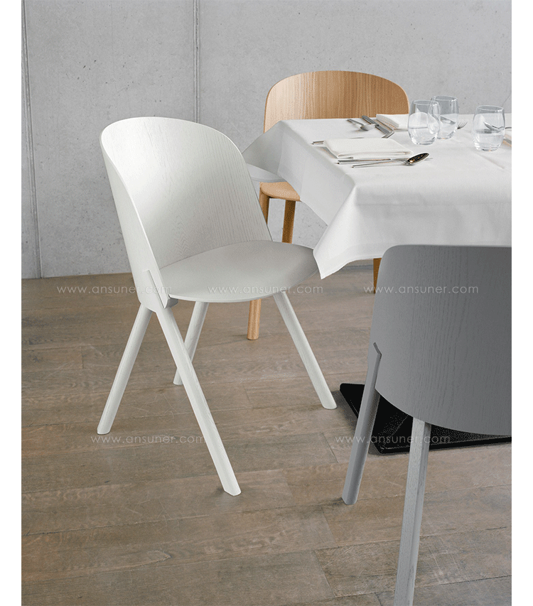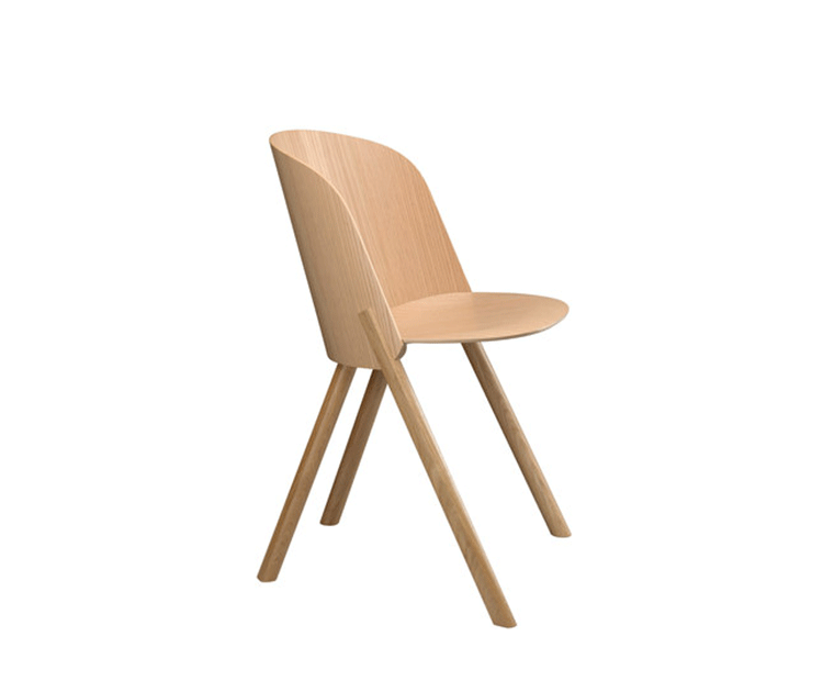 named after the famous card trick,THIS THAT OTHER seating series is made of robust and versatile molded oak-veneered plywood.Rounded shapes give way to modern spirit and rational details in distinct quality.With a streamlined construction,THIS side chair represents a very economical and appealing solution,especially for the contract market.