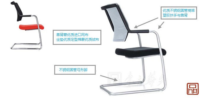 1、优质不锈钢圆管椅架,塑胶扶手与靠背。