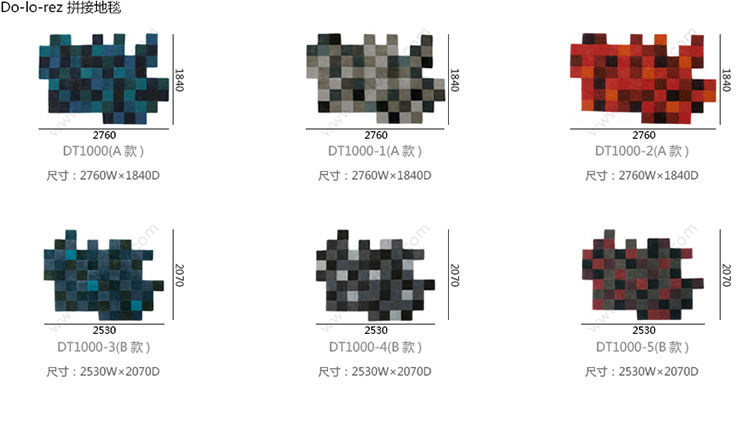 Do-lo-rez 拼接地毯 系列尺寸/示意图