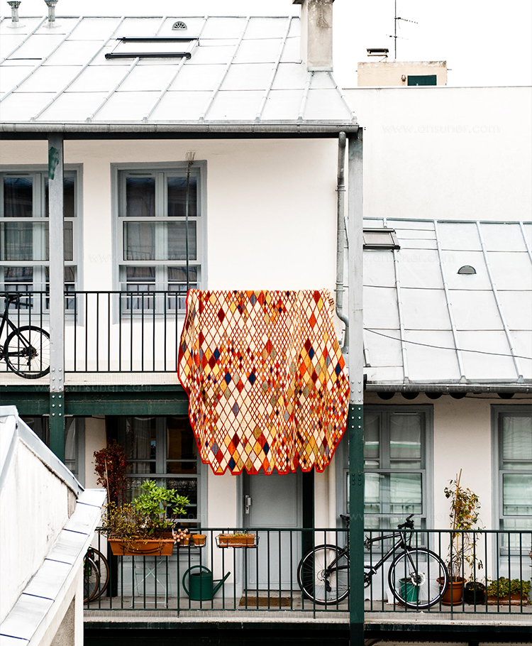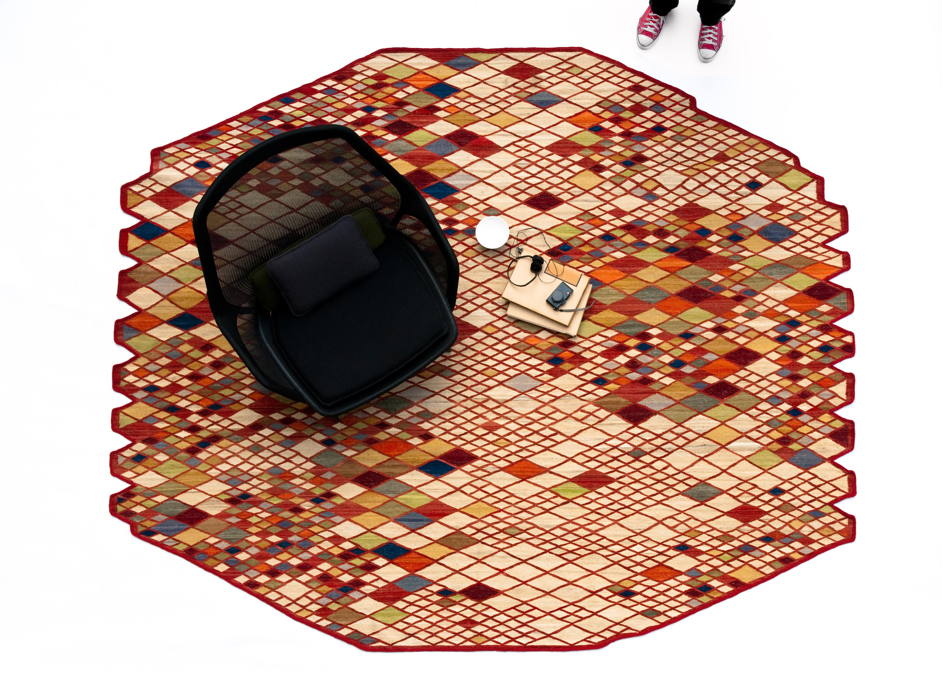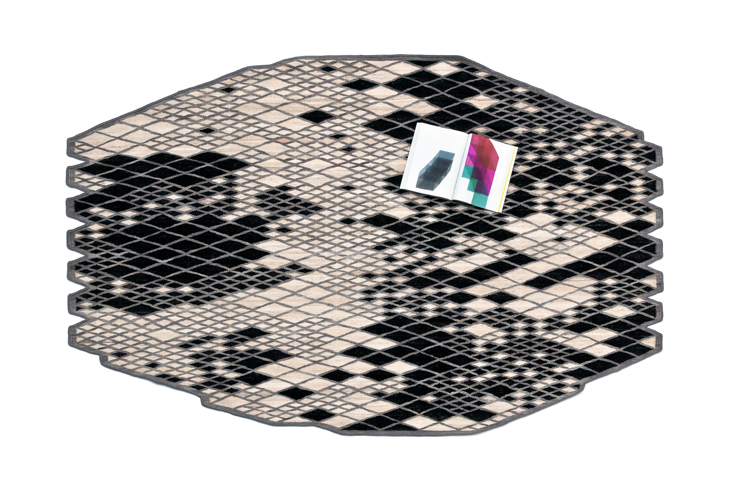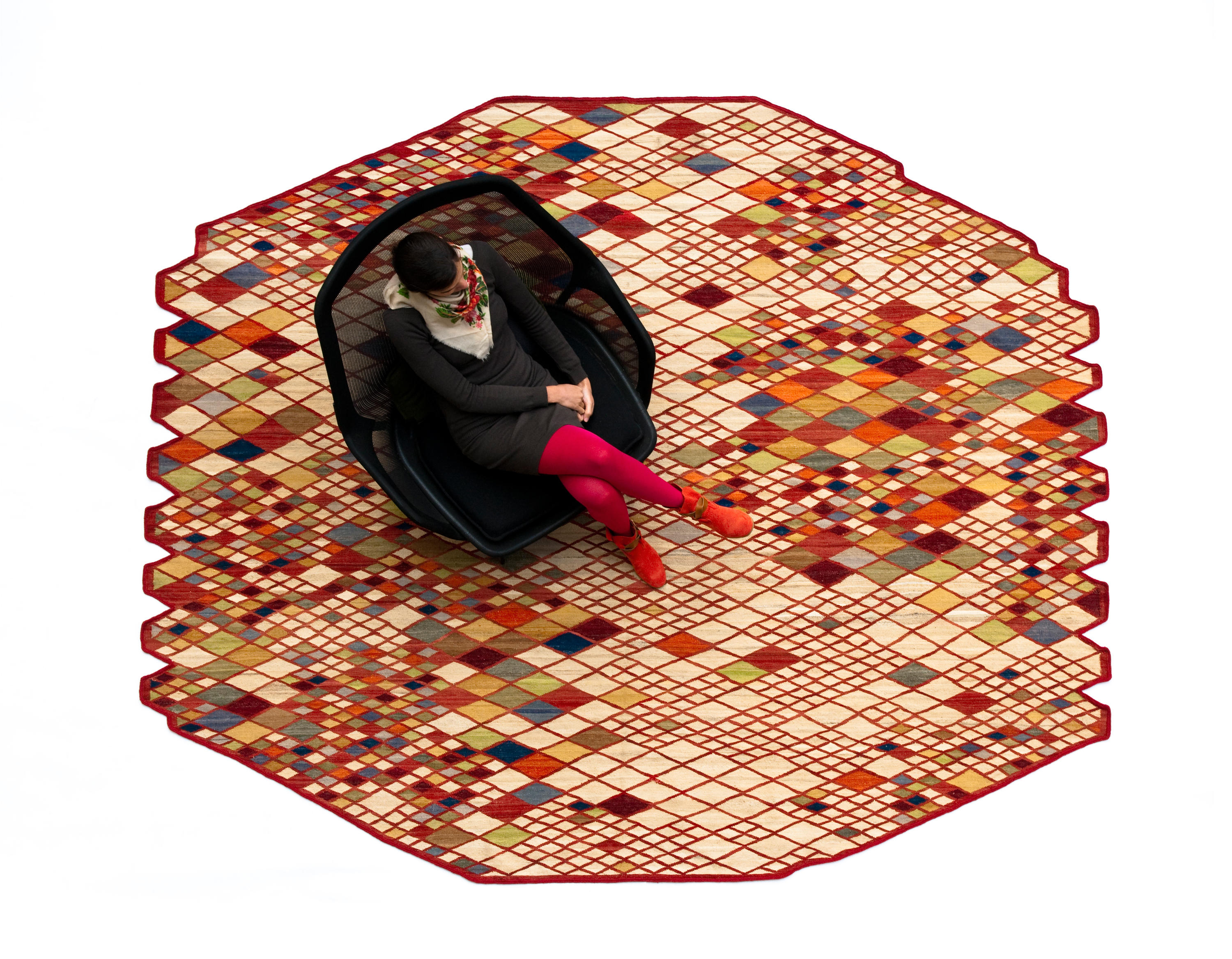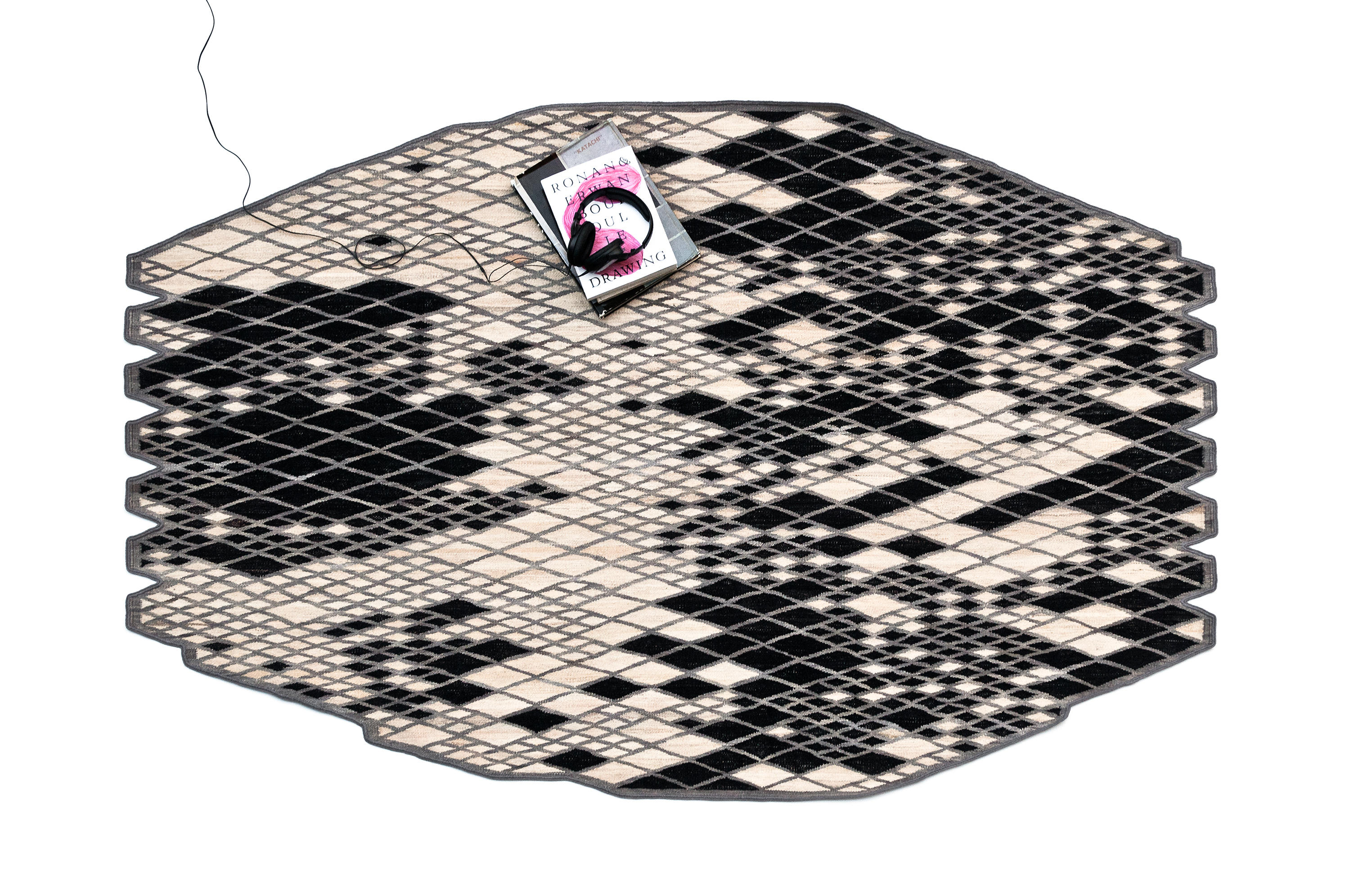 地毯通常被设计成一个图案分布的表面。然而,在格的情况下,模式被定义为一种生成地毯本身形式的建设性系统。彩色条纹的系统,在这种模式,形式和颜色以一种亲密的方式联系在一起,创造了一个不同的范围。——布洛埃克兄弟解释道。