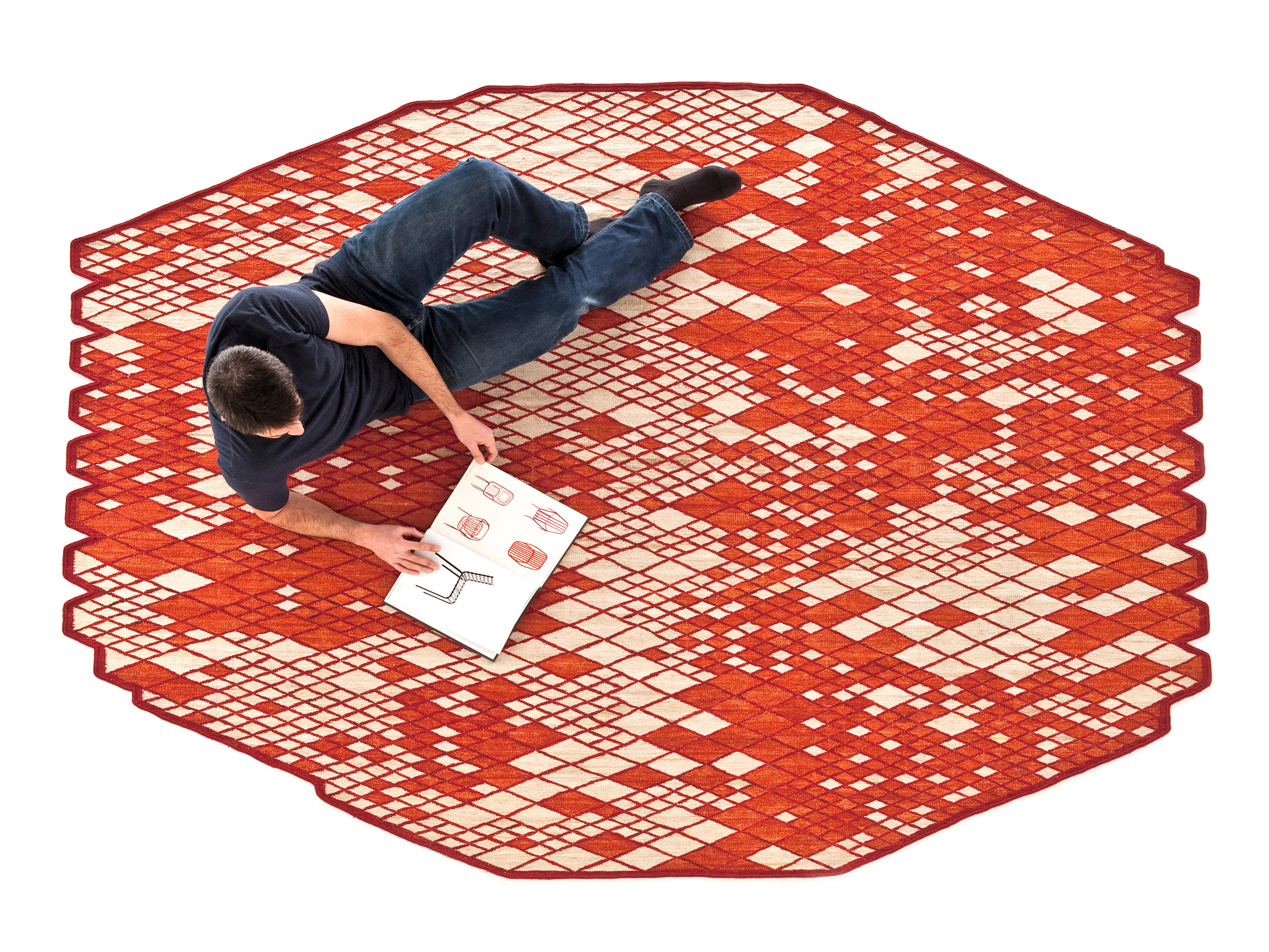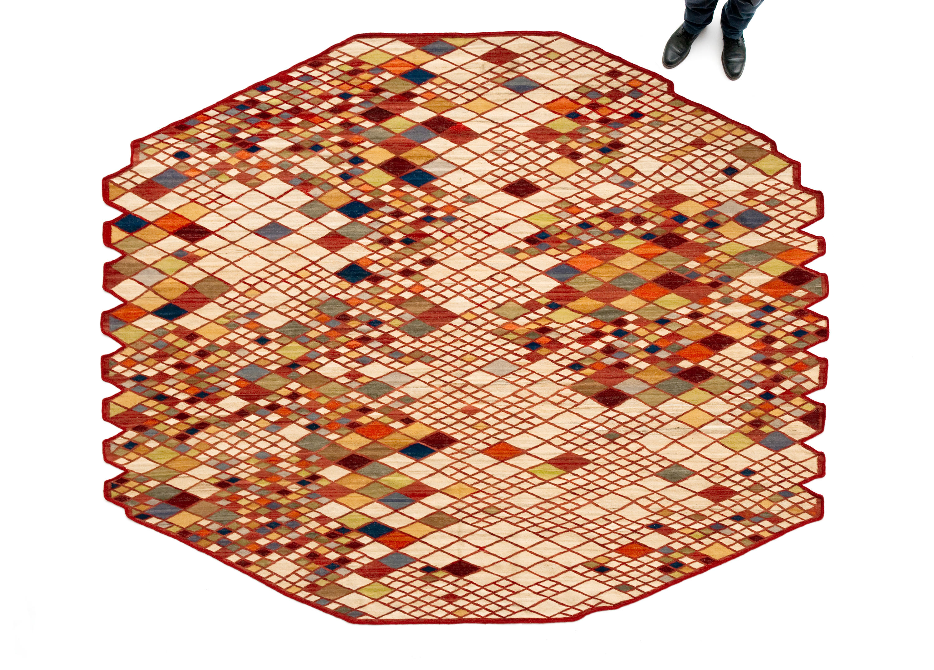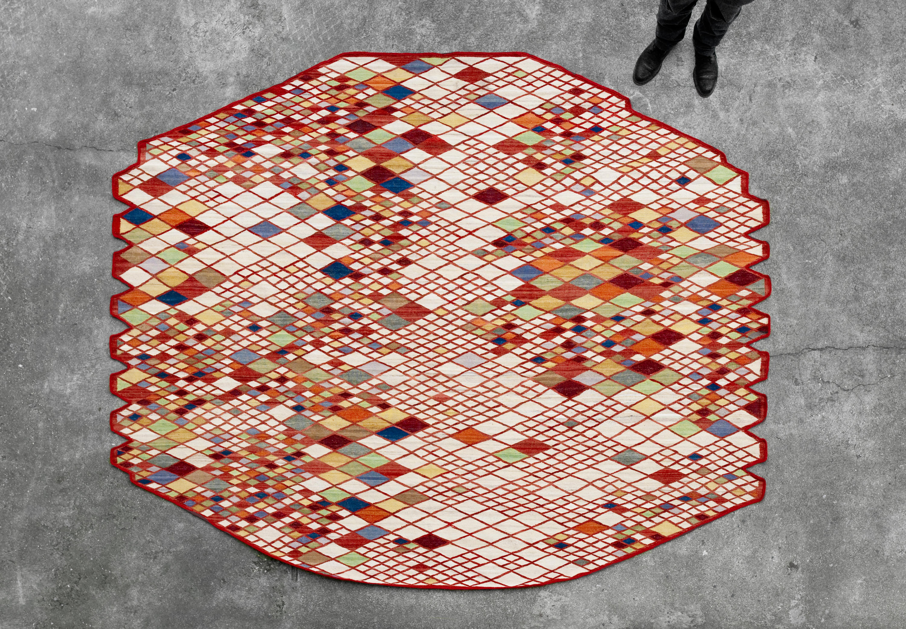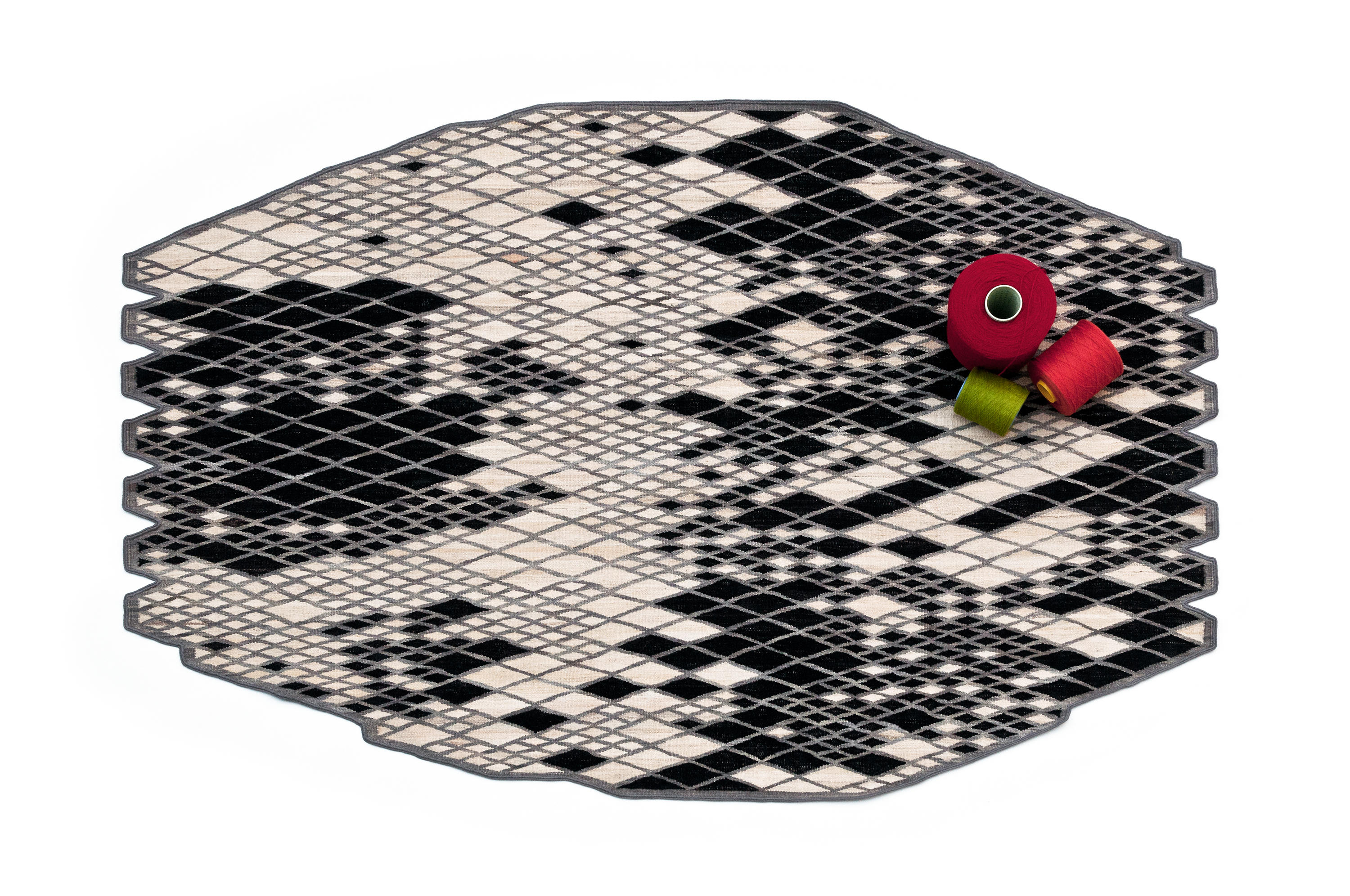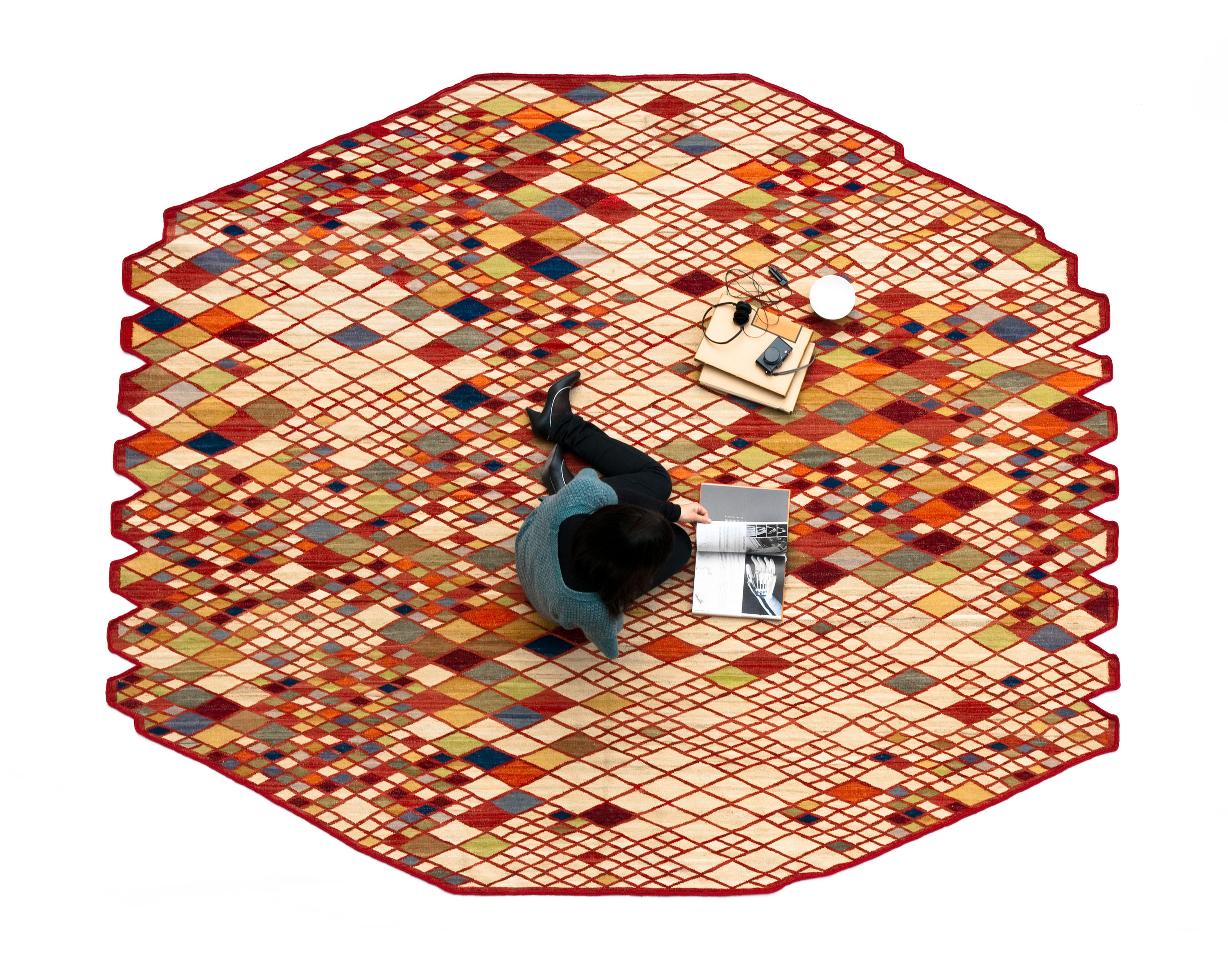 地毯通常被设计成一个图案分布的表面。然而,在格的情况下,模式被定义为一种生成地毯本身形式的建设性系统。彩色条纹的系统,在这种模式,形式和颜色以一种亲密的方式联系在一起,创造了一个不同的范围。——布洛埃克兄弟解释道。