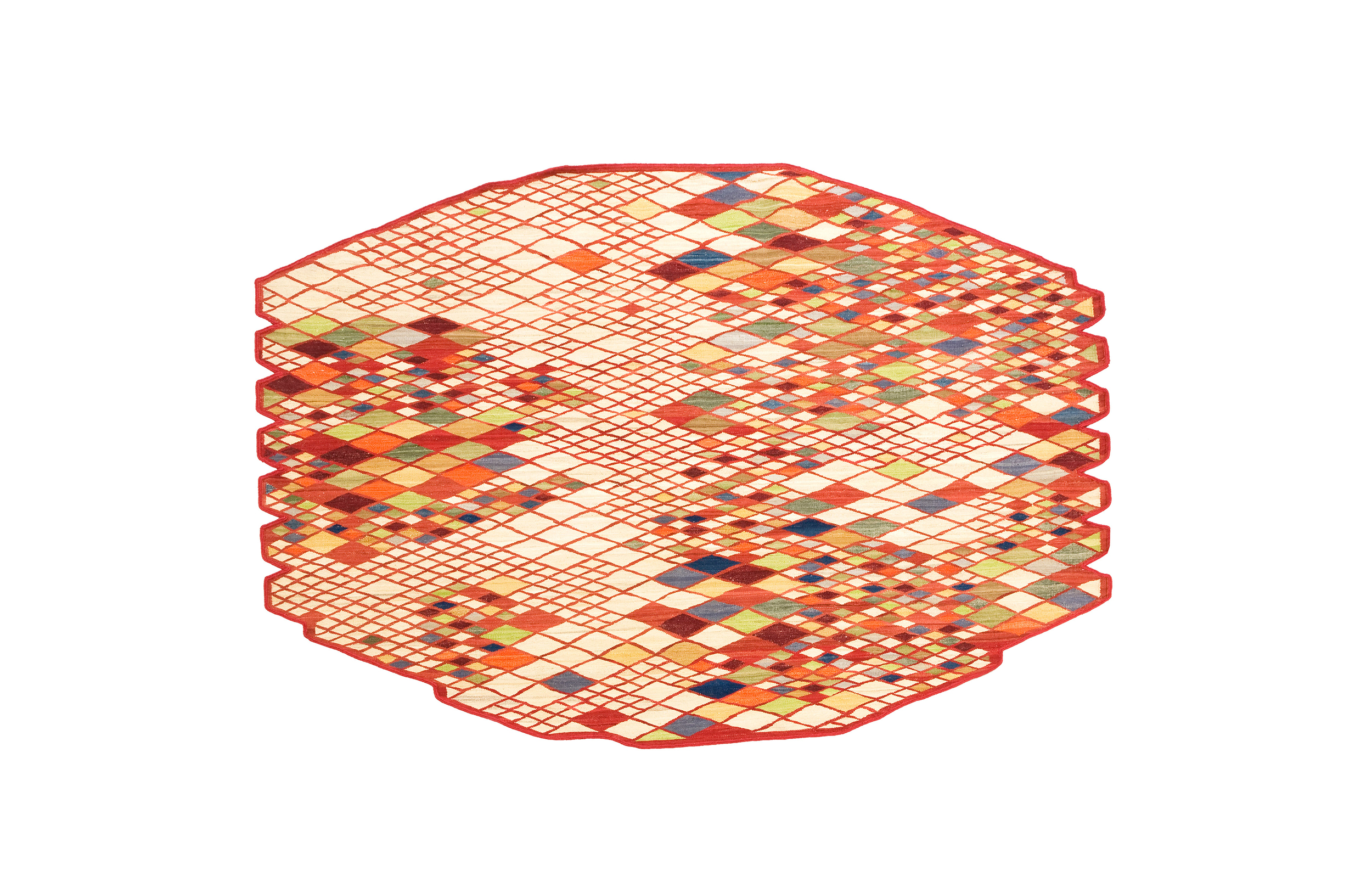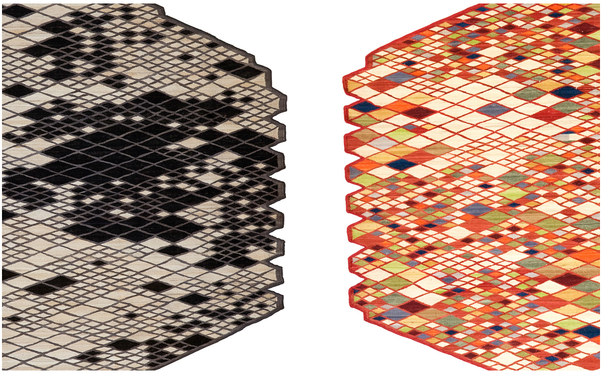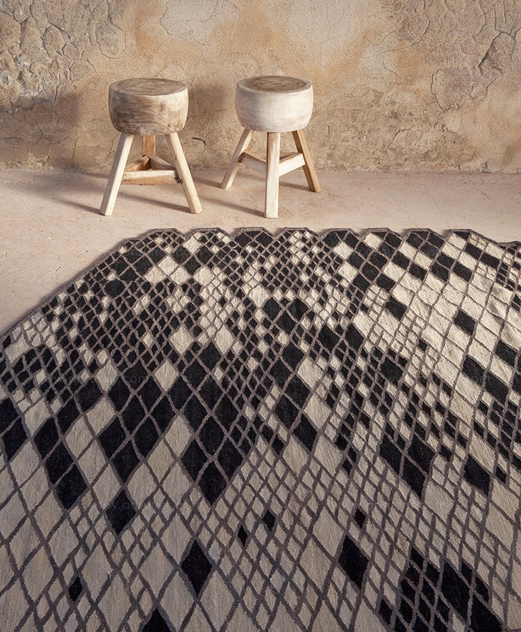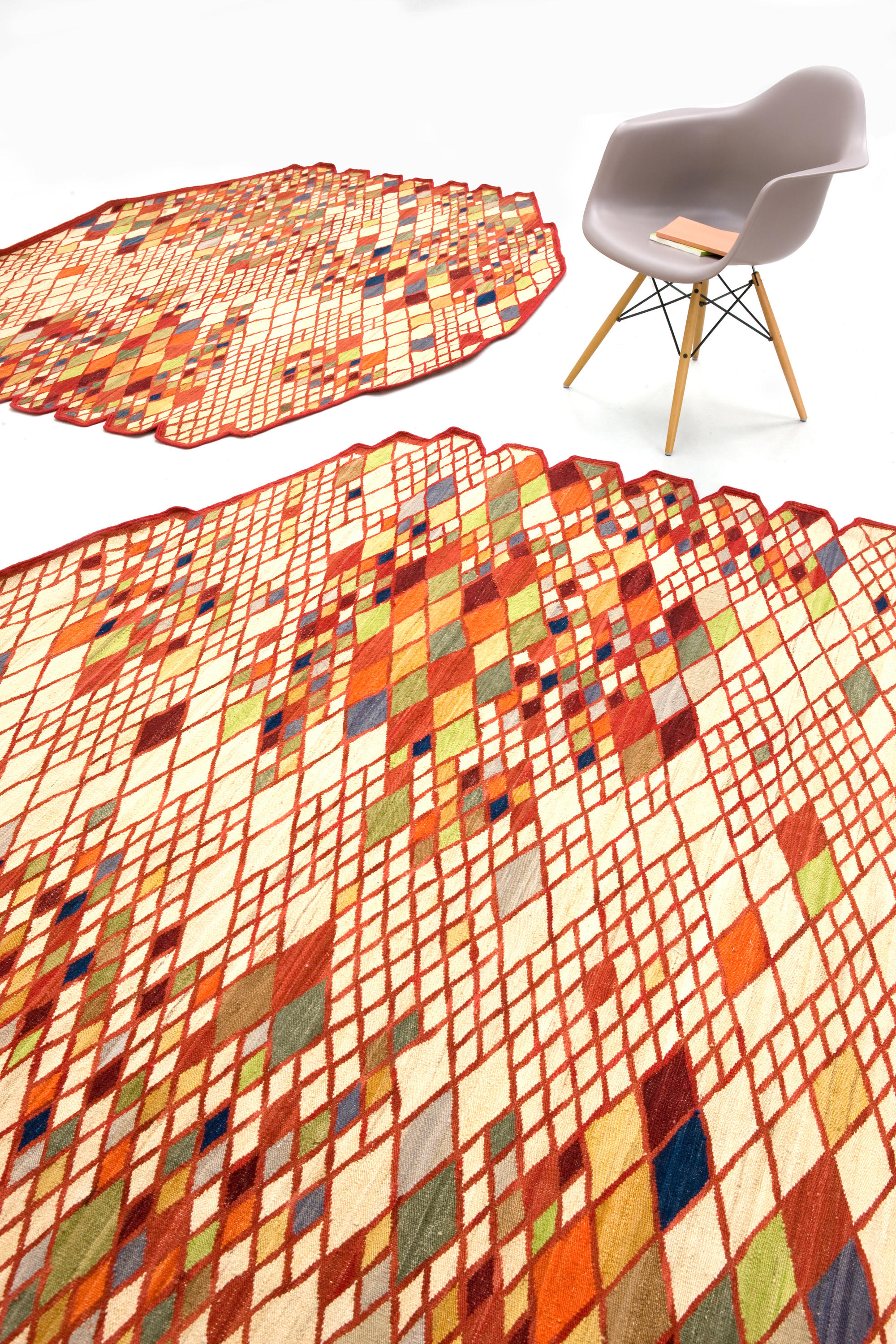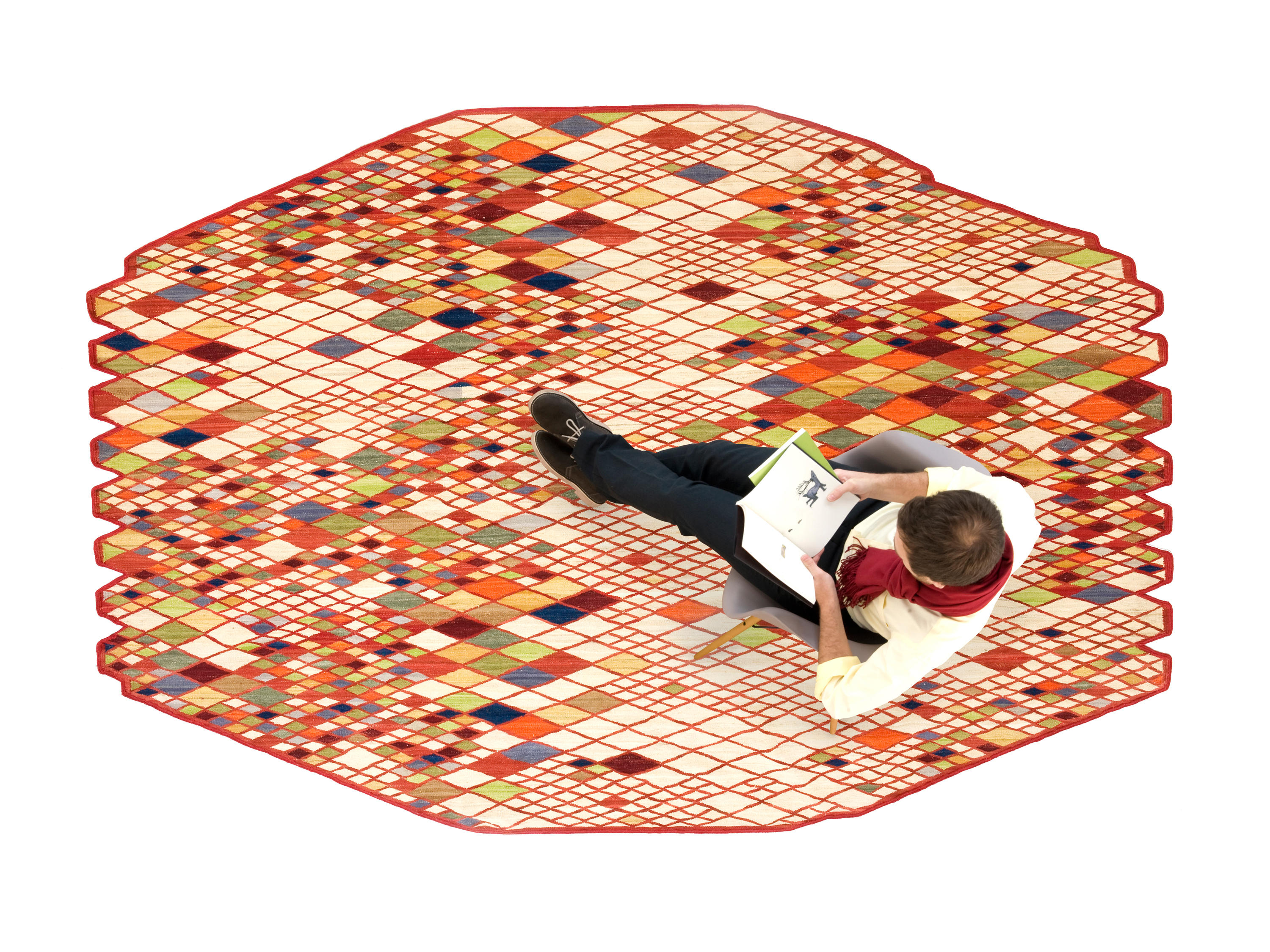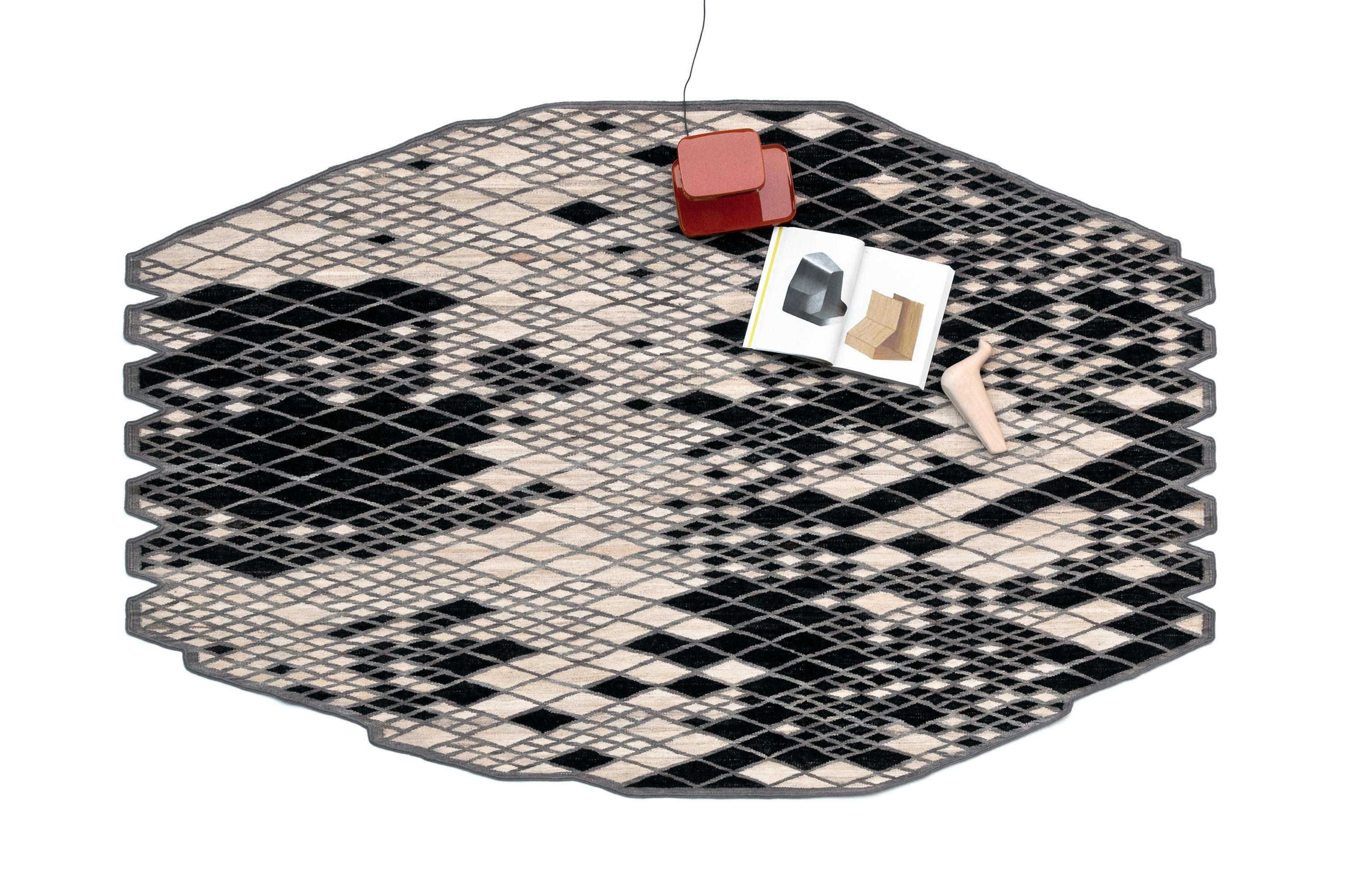 地毯通常被设计成一个图案分布的表面。然而,在格的情况下,模式被定义为一种生成地毯本身形式的建设性系统。彩色条纹的系统,在这种模式,形式和颜色以一种亲密的方式联系在一起,创造了一个不同的范围。——布洛埃克兄弟解释道。