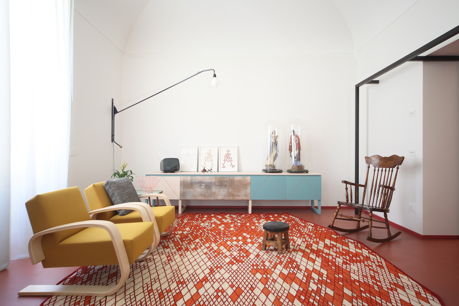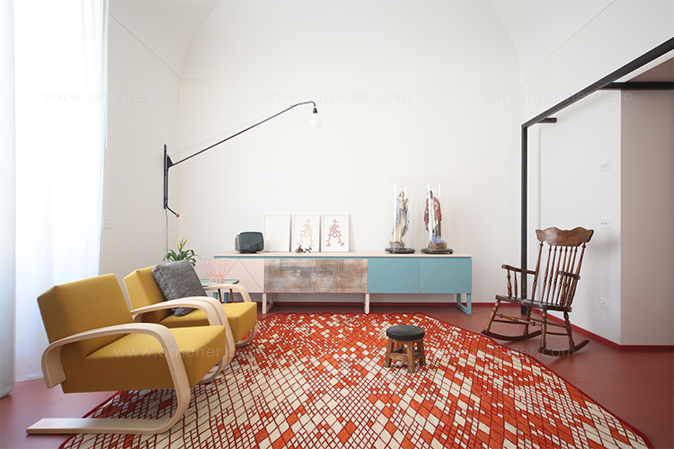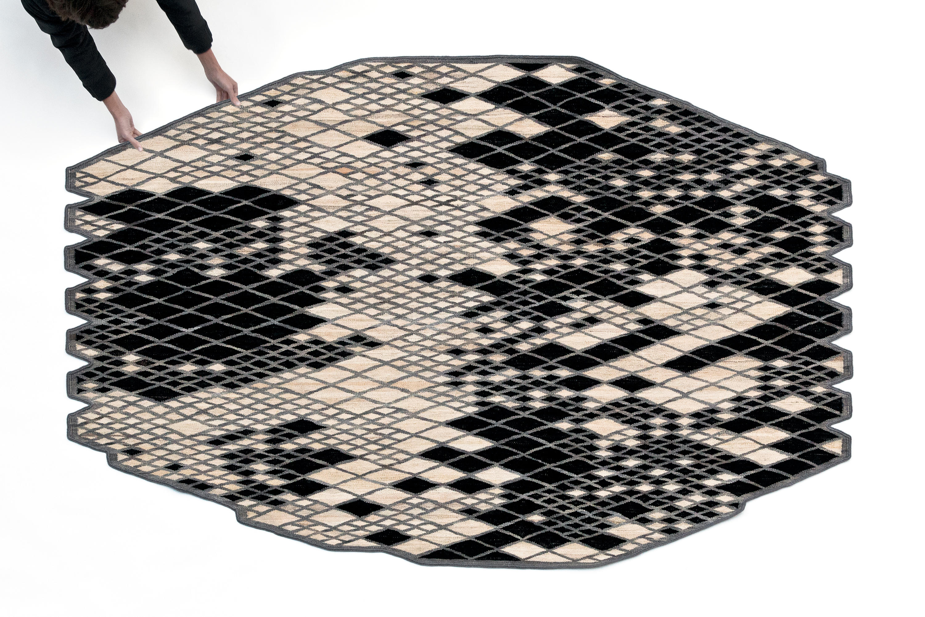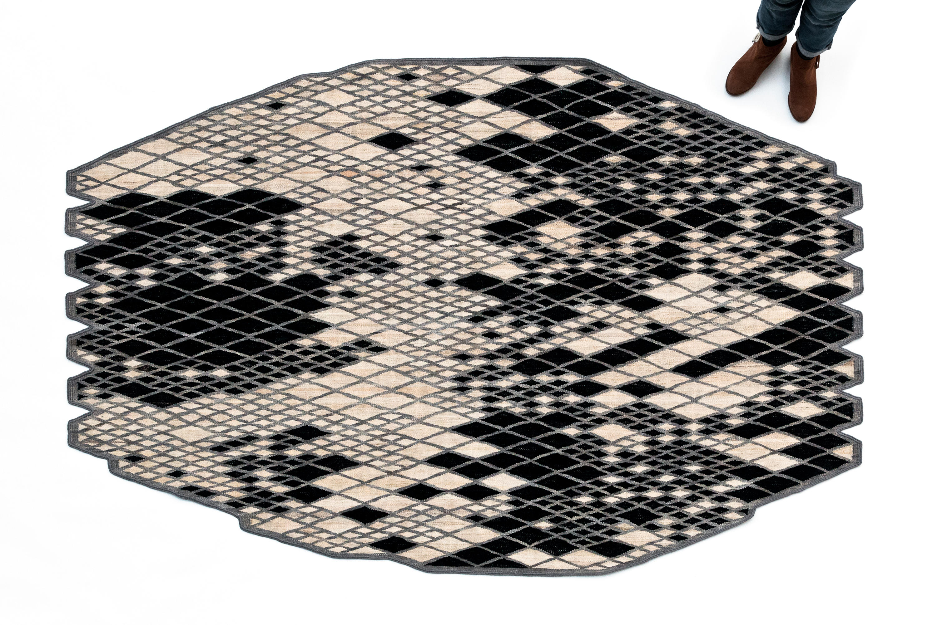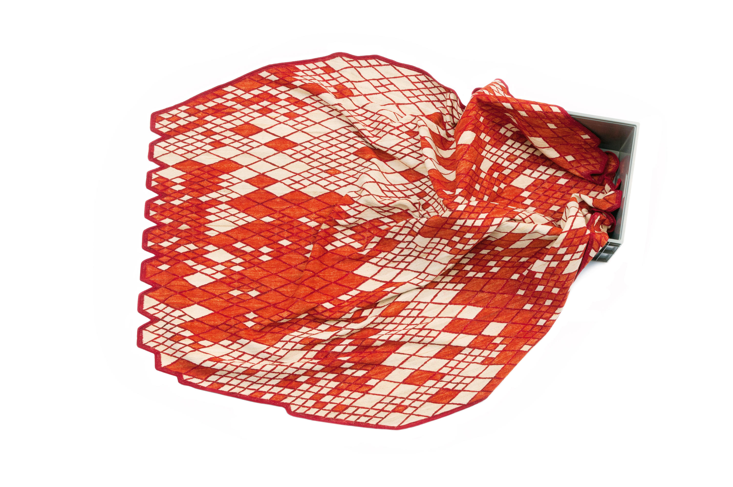 地毯通常被设计成一个图案分布的表面。然而,在格的情况下,模式被定义为一种生成地毯本身形式的建设性系统。彩色条纹的系统,在这种模式,形式和颜色以一种亲密的方式联系在一起,创造了一个不同的范围。——布洛埃克兄弟解释道。