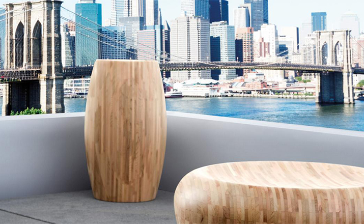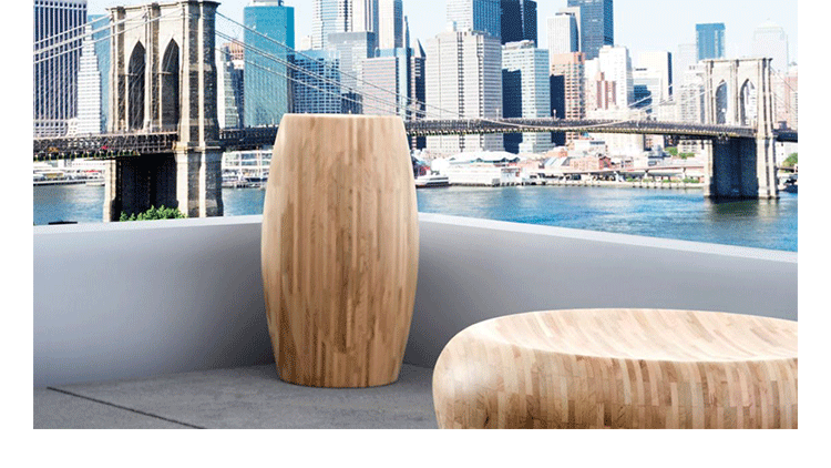 The Motley drums show innovation in function, technique and form.Small pieces of wood are knitted together with nger-joints into a large 12mm thick sheet(cedar).Together they make a solid block.The cedar drums are highly suitable for interior and exterior use.The birch drums are only suitable for indoor use.Table-seat-pedestal.