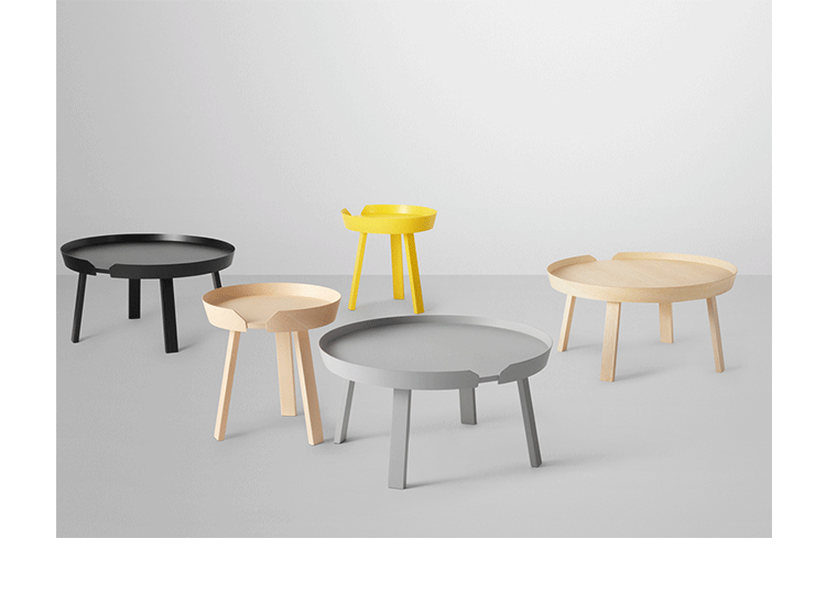 Around 边几/咖啡桌系列是丹麦设计师 Thomas Bentzen 2011 年发表的作品,结合简约外型与多样功能性,加高的桌缘设计减低桌面物品掉落的机会,是款相当平易近人的设计且容易搭配。设计师 Thomas Bentzen 在设计这款咖啡桌时说,希望可以寻求一种友好、优美的风格,这款小巧简单的咖啡桌很具有现代感,而且将不同尺寸多个组合在一起是个不错的选择。