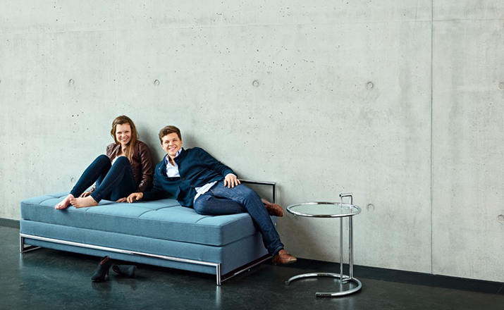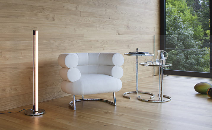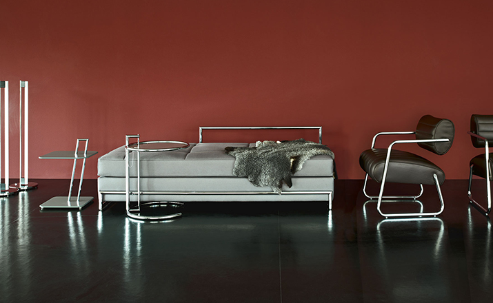 In the 1920s Eileen Gray experimented with various versions of the design of the Adjustable Table E 1027. As she changed the look of the table with a black metal top as an alternative to the crystal glass top, she also selected black as the colour for the frame. The matte black lacquer clearly emphasises the lines of the table and its form – a version she considered especially elegant. Together with Zeev Aram, Eileen Gray developed her Adjustable Table E 1027 for production in the 1970s; they both decided to produce the chrome-plated version first, with the intention to introduce the table frame in black at a later date