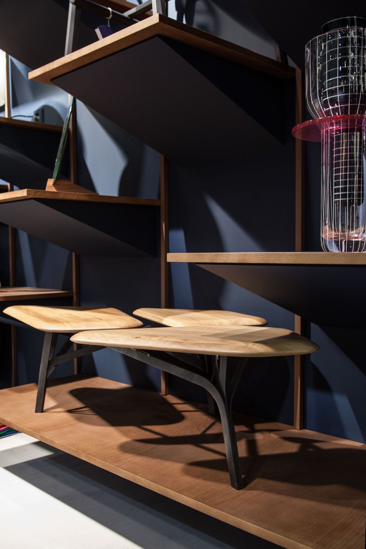 “波”是一个咖啡桌的灵感来自于石头松树波勒兹别墅的罗马。 金属结构繁殖的分支网络和支持三种木质表面。 表可以组合组合和成长这国内的树冠。