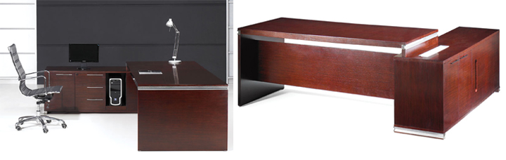 ※ 上图为大班台不同角度的展示,突出每个细节做工的精细,让我们对工艺的细腻产生美的视觉冲击,采用柚木MFC(美耐板),木析纹理清晰明快,与铝合金的搭配相得益彰。内藏钢架,保证结构与台面的强度。侧板与台面之间开有线孔,保证主台外观完整又兼顾了线路管理需求!