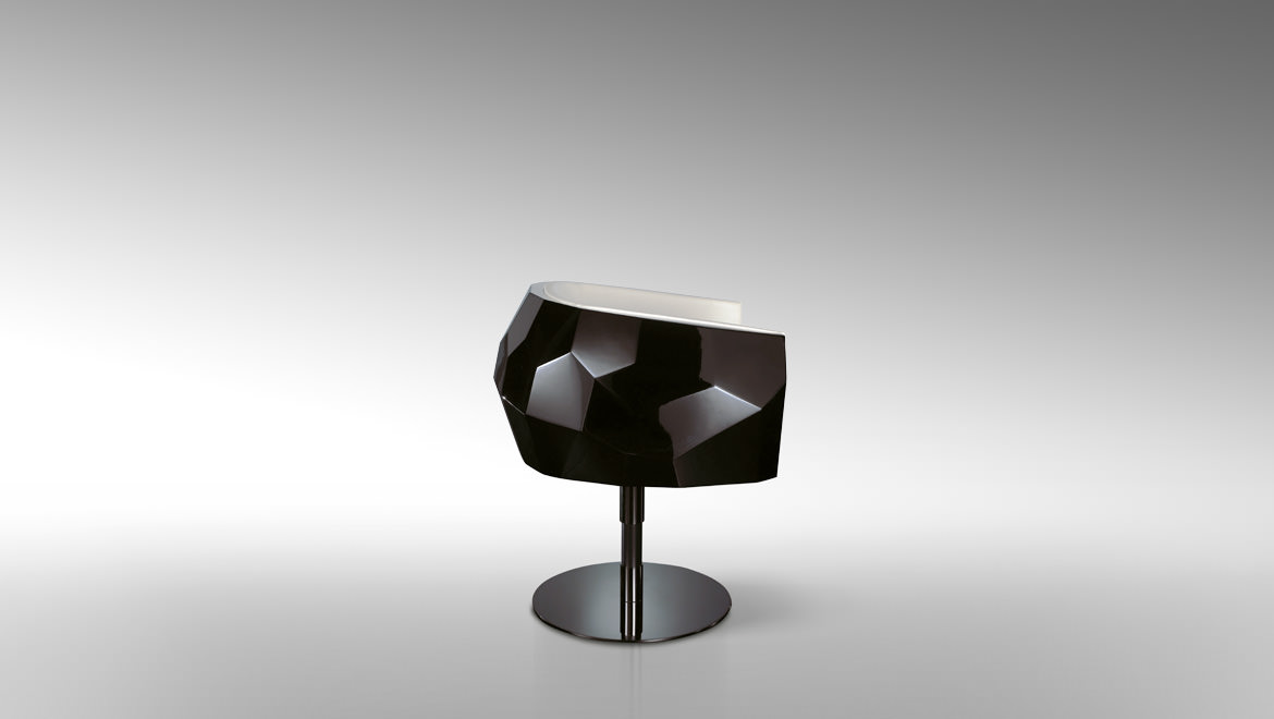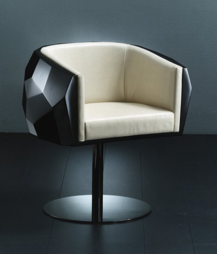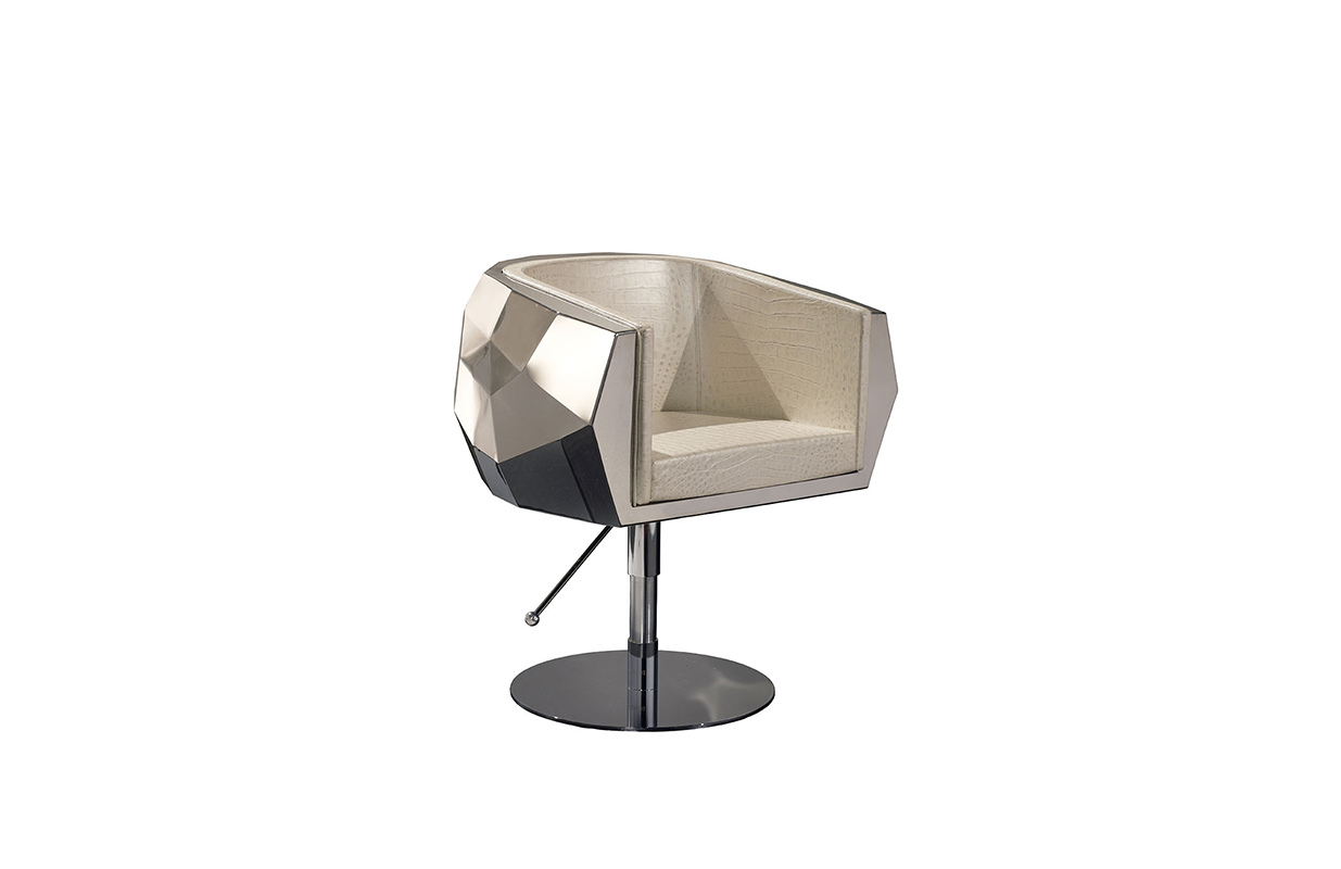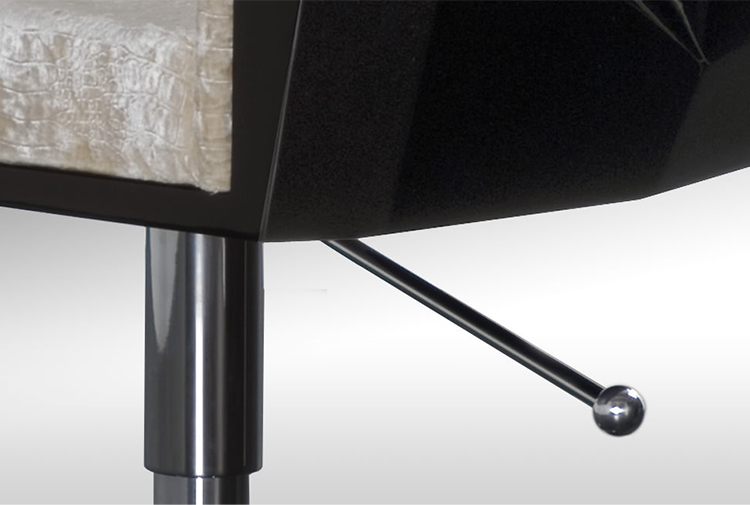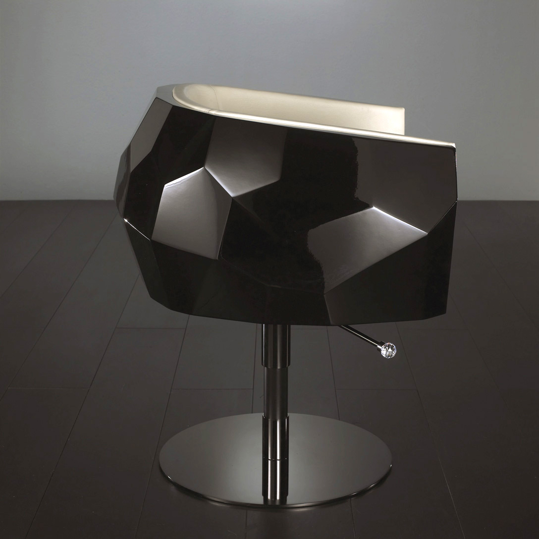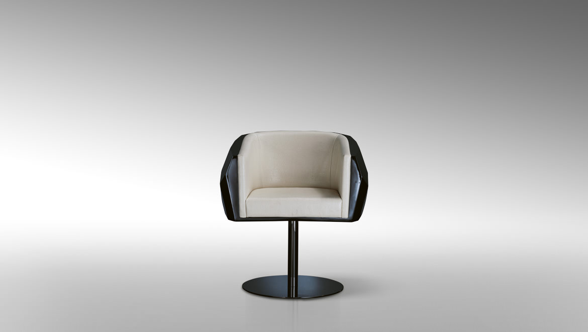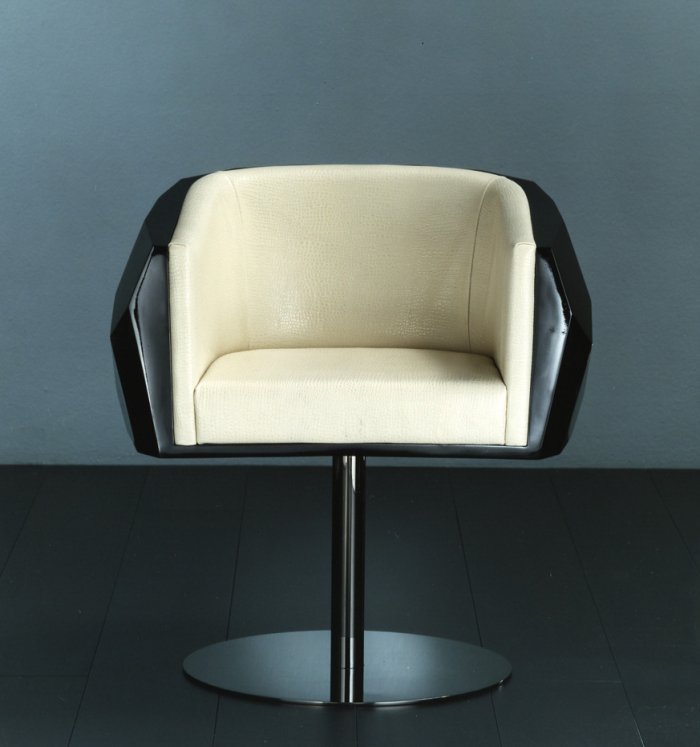 豪华座垫可在皮革或织物色调与您的内部。椅子放在金属底座上,有各种各样的饰面,如镀铬。无缝漆聚氨酯外壳有黑色、象牙、铂、银和一些变化的坐垫和金属底座.
