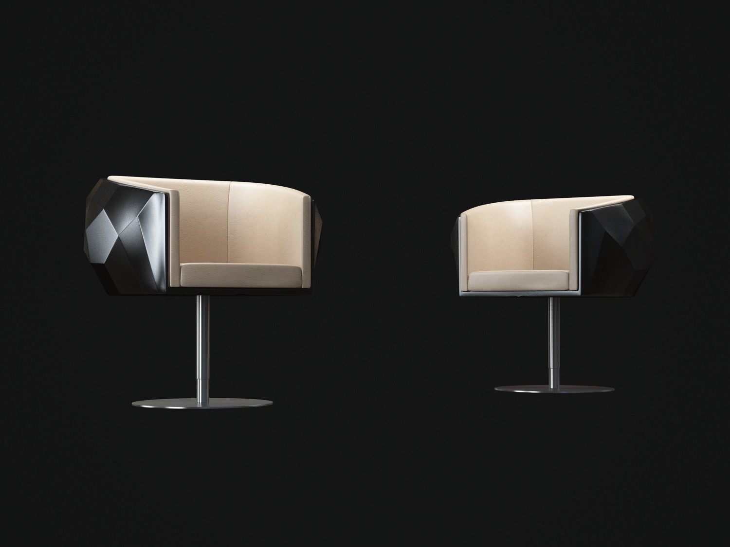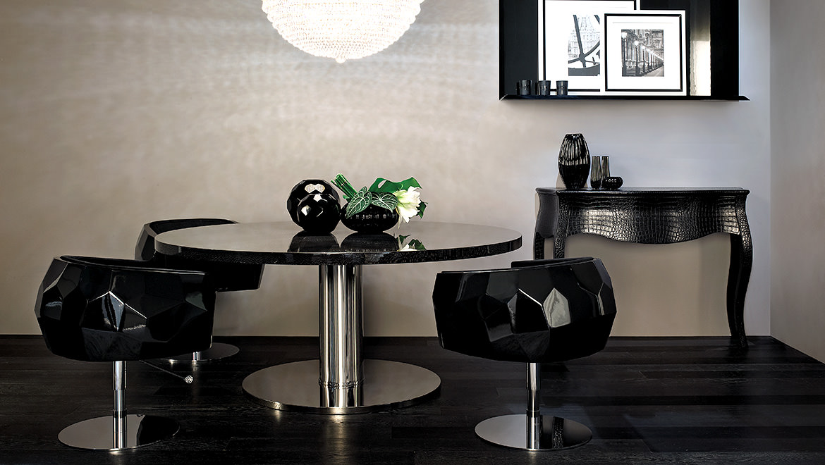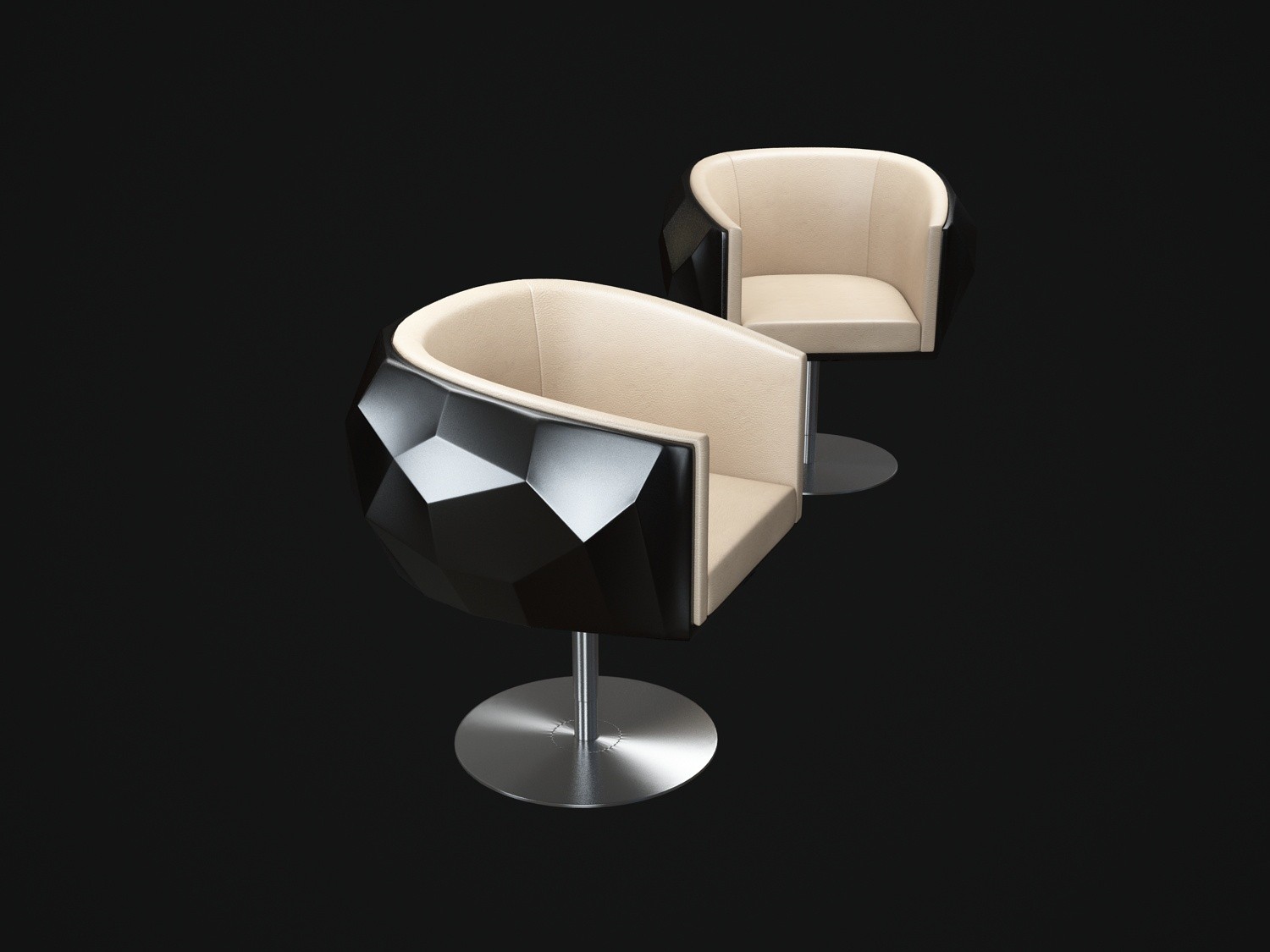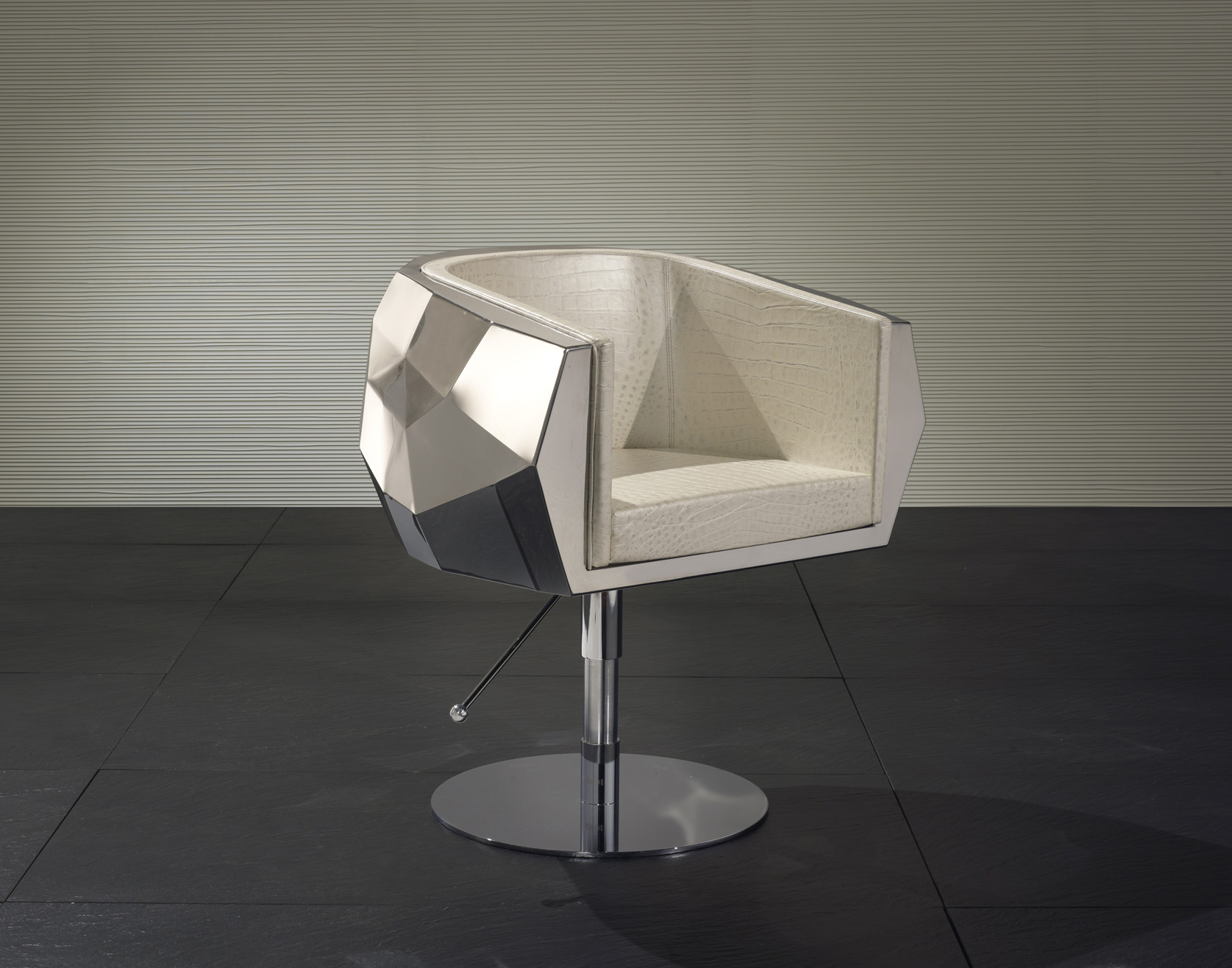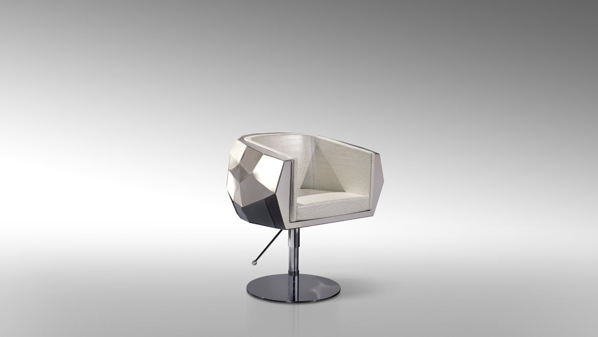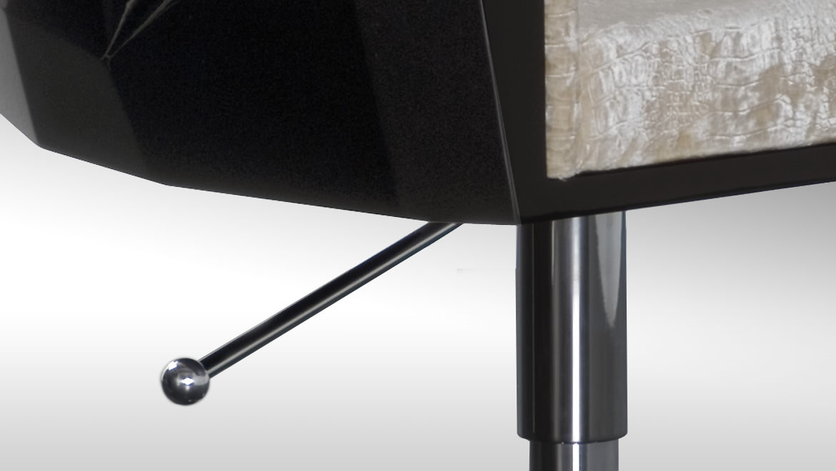豪华座垫可在皮革或织物色调与您的内部。椅子放在金属底座上,有各种各样的饰面,如镀铬。无缝漆聚氨酯外壳有黑色、象牙、铂、银和一些变化的坐垫和金属底座.