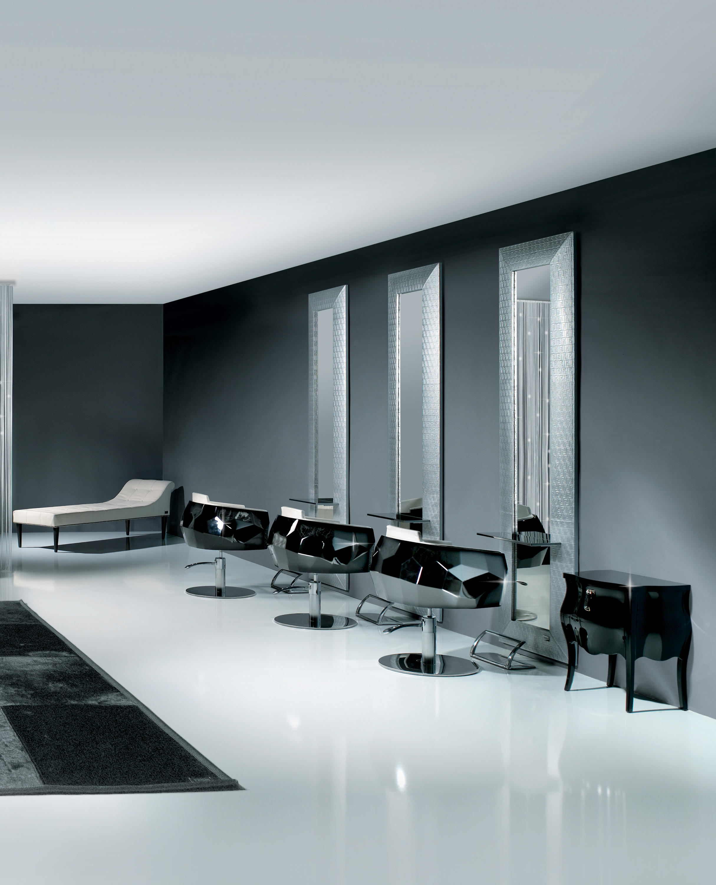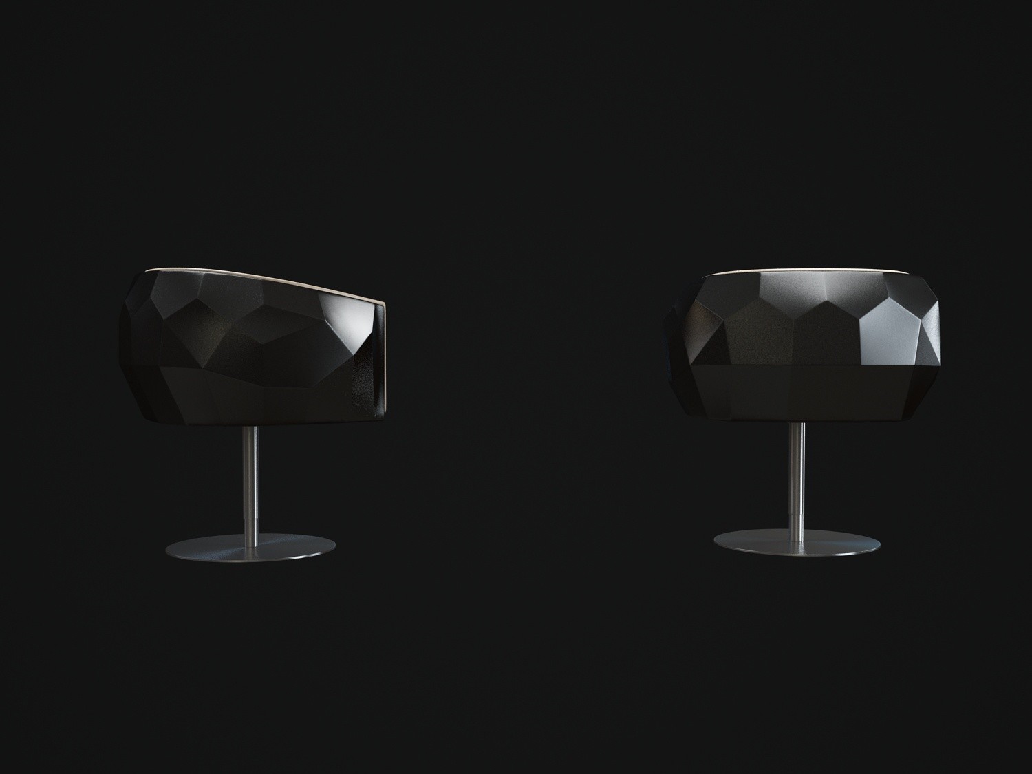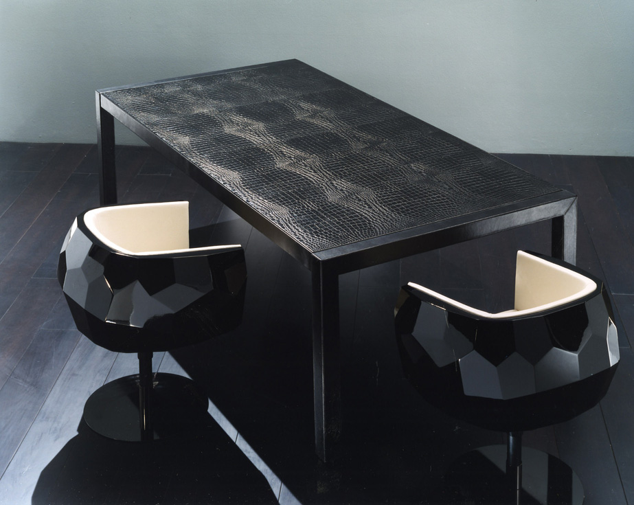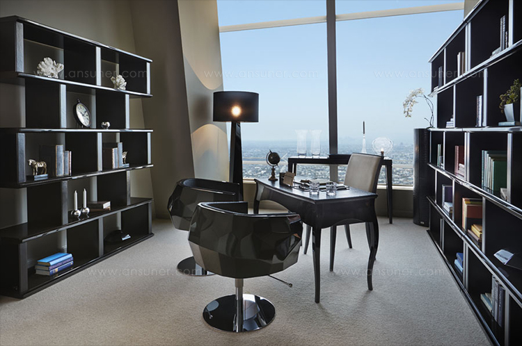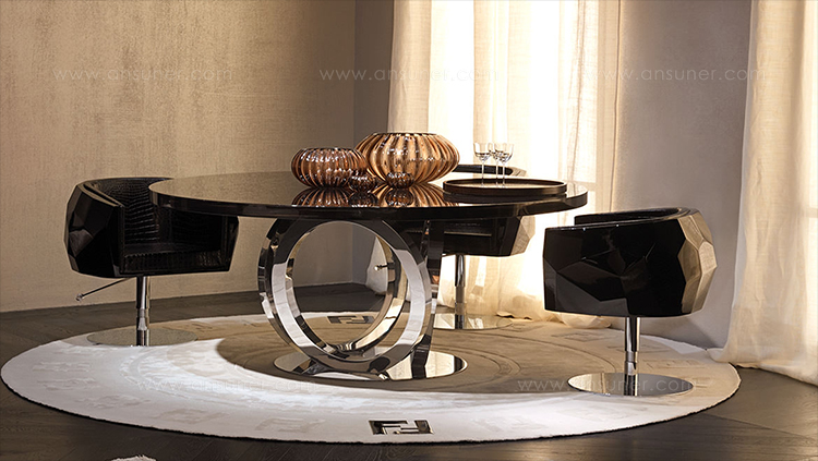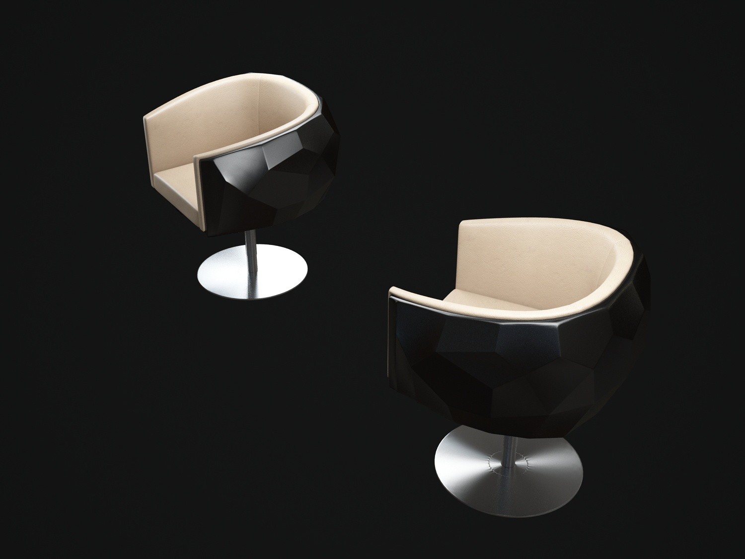 豪华座垫可在皮革或织物色调与您的内部。椅子放在金属底座上,有各种各样的饰面,如镀铬。无缝漆聚氨酯外壳有黑色、象牙、铂、银和一些变化的坐垫和金属底座.