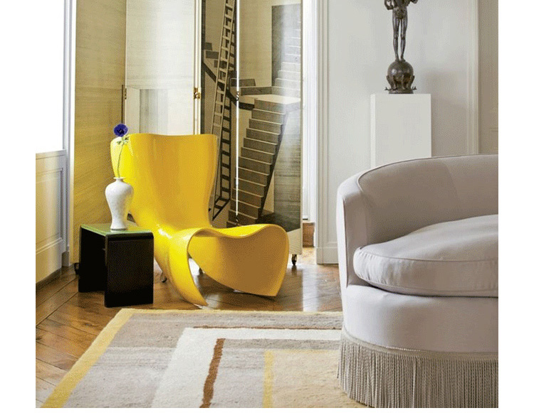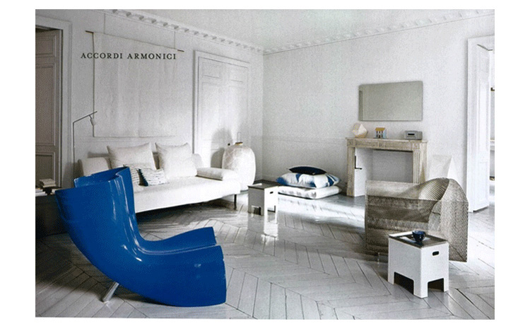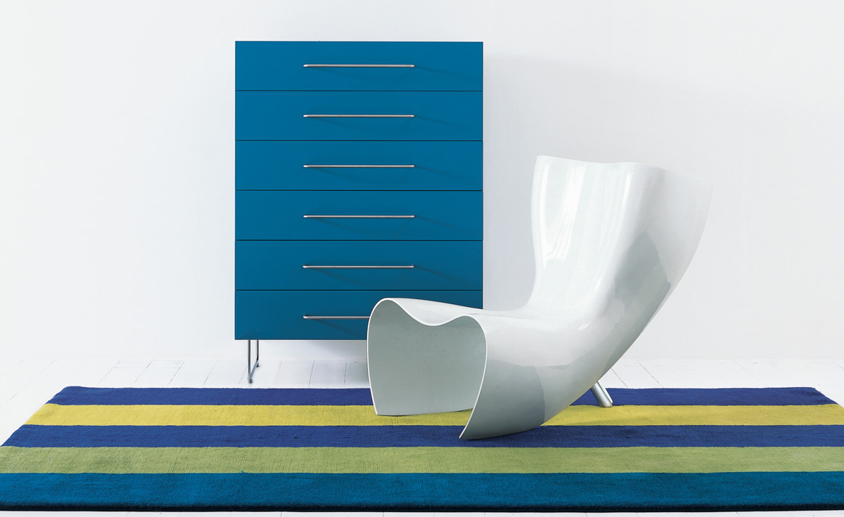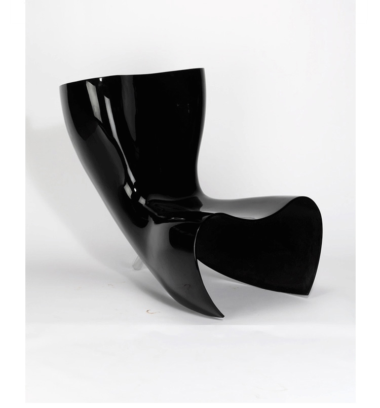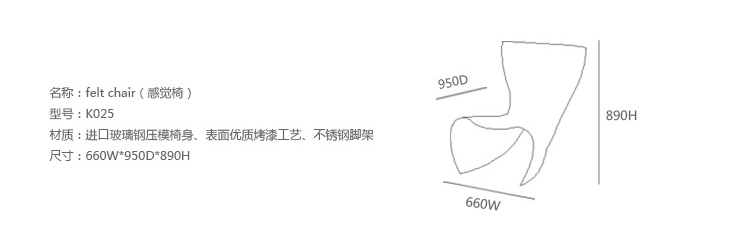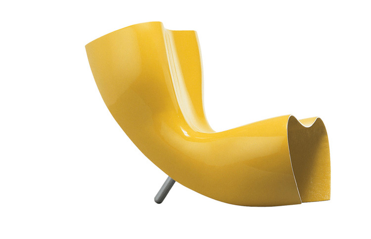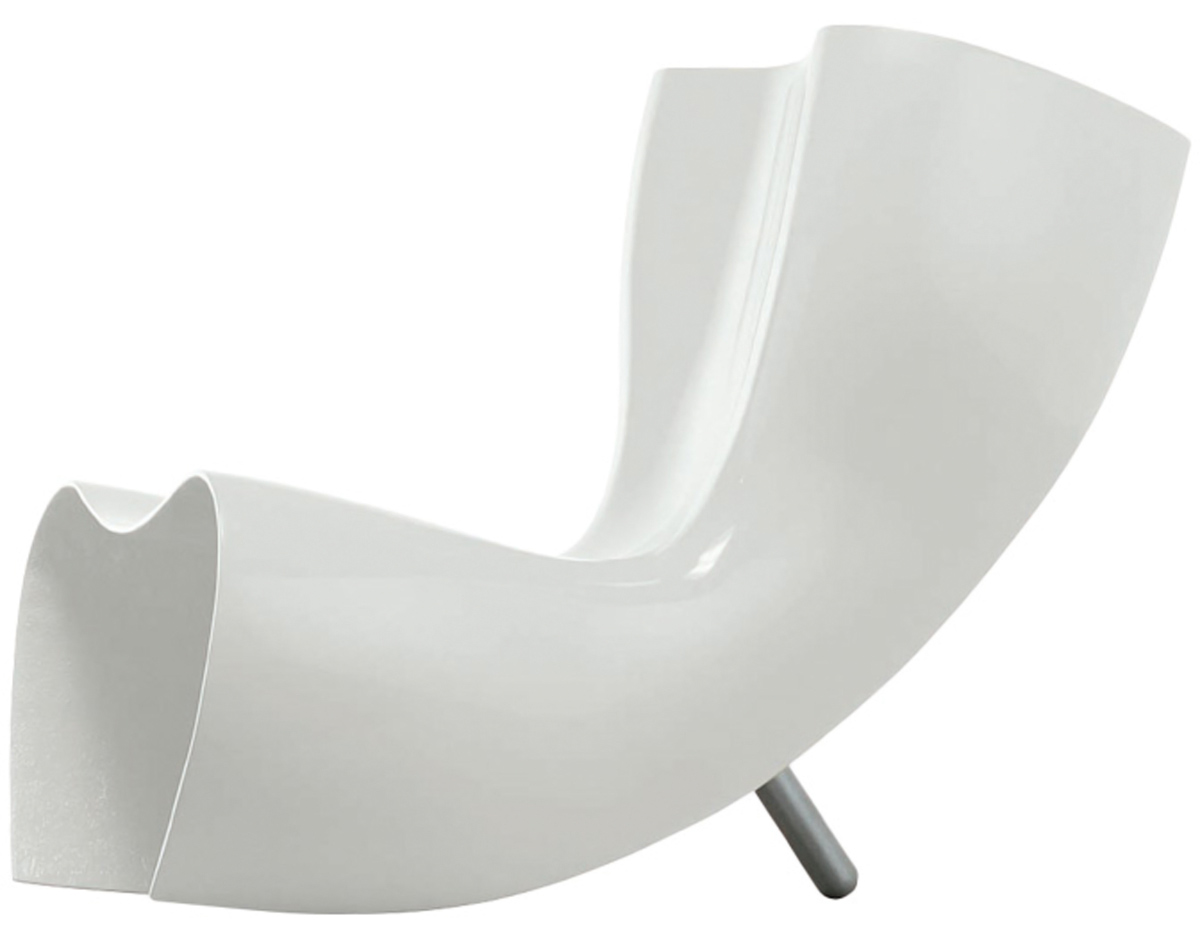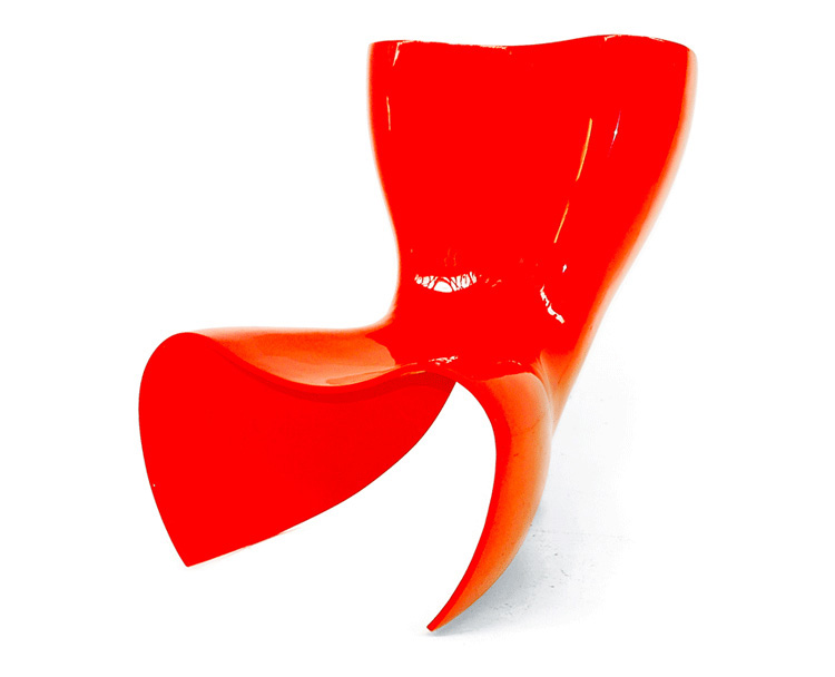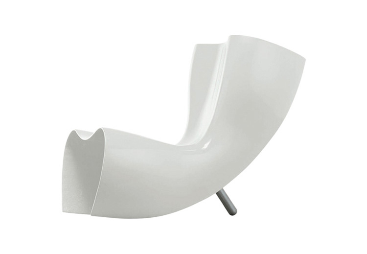 澳洲設計師 Marc Newson 1993 為義大利家具大廠 Cappellini 設計這款 Felt 造型椅,主要結構以強化玻璃纖維製成,後方拋光鋁製腳座與前體結構形成穩固的"類三腳"底座,前衛大膽的造型十分具有視覺效果,是現代設計中的經典作品。