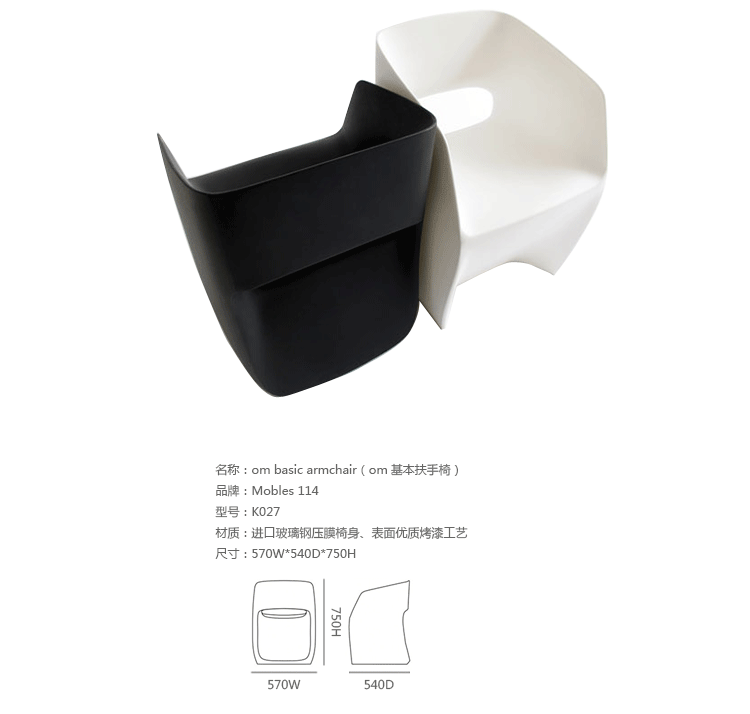 Om Basic Armchair(Om基本扶手椅)是个适合室内和室外使用的单个块聚乙烯扶手椅,100%可回收利用。可用在在大厅、等候区、酒楼、会议桌、户外咖啡馆和家庭使用。椅背与椅座的流线线条唯美而符合人体工学,舍弃浮夸的造型设计,却在细节中体现工艺之美。