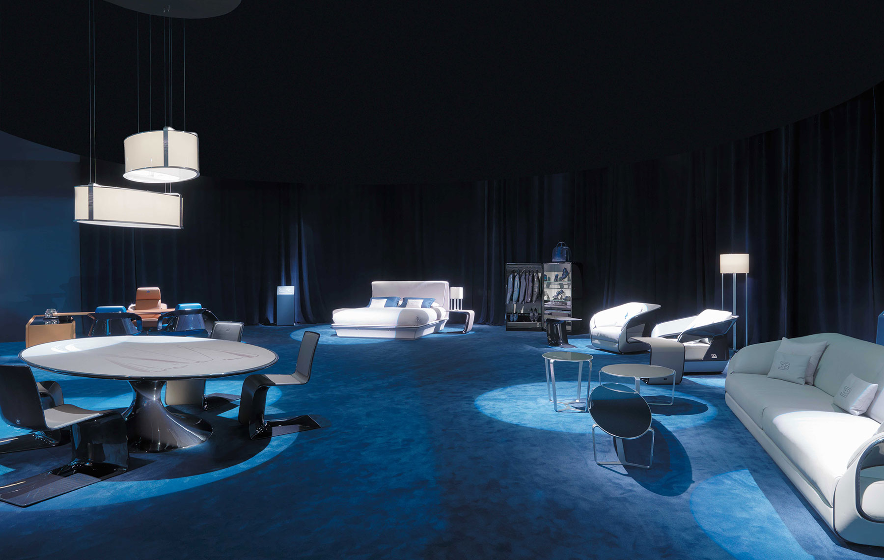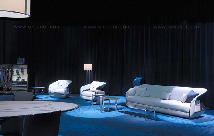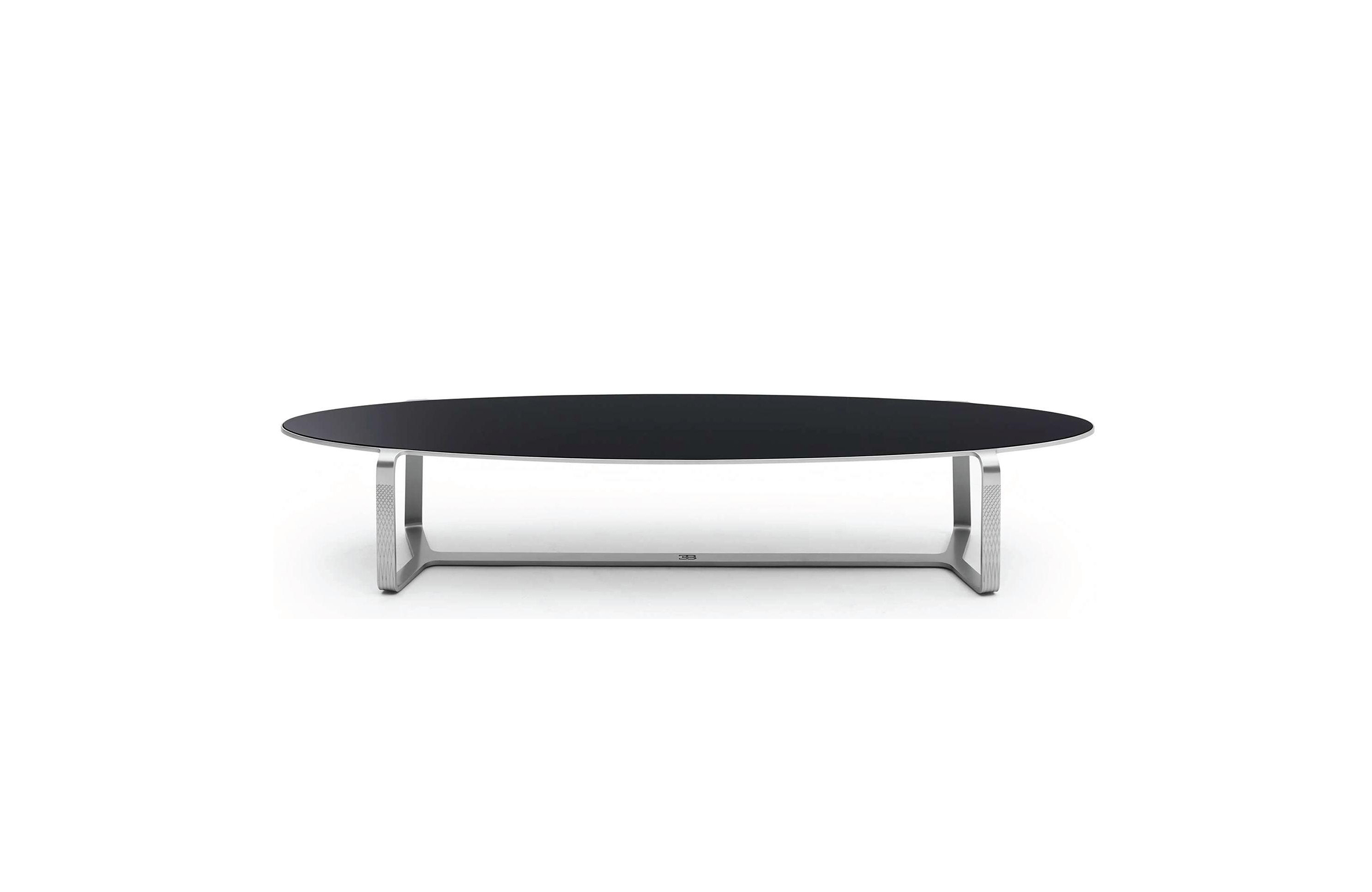 从一个极轻的铝制框架设计,椭圆形的椭圆形桌子被雕刻成几何图案,灵感来自于布加迪内部。这是一款高档的高档住宅,桌子上有一个烟熏的钢化玻璃,后面是传说中的布加迪蓝色。