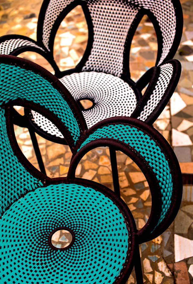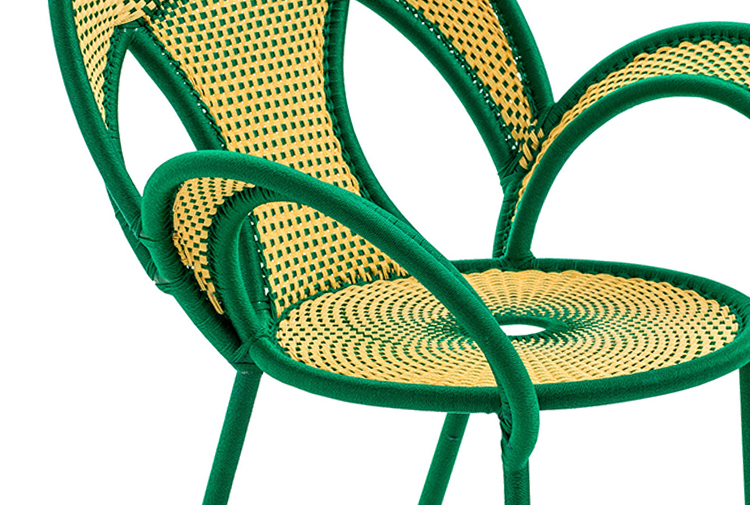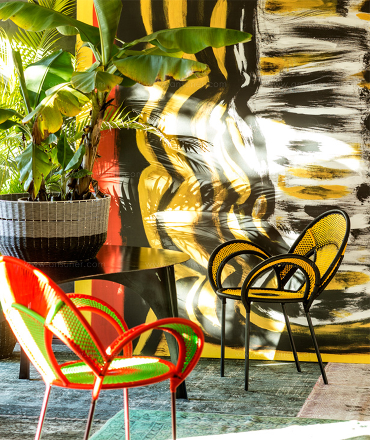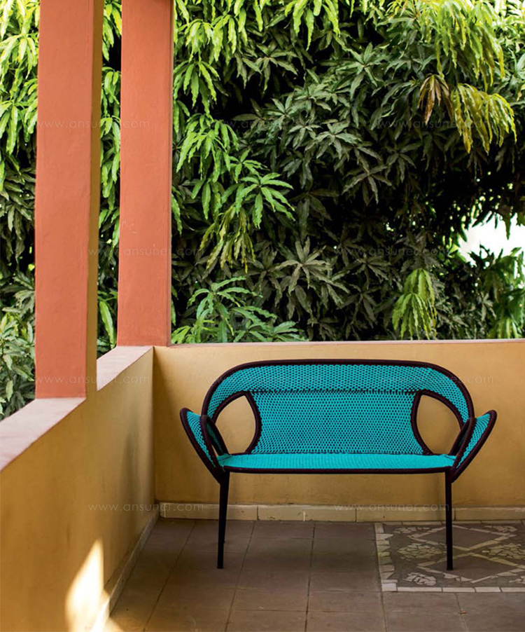 这个椅子的形状,尤其是扶手的形状设计,灵感来源于雄性鸵鸟在求偶时所跳的舞蹈,banjooli的扶手如同雄性鸵鸟伸出了翅膀,向雌性展示它们的美丽。Banjooli是M 'Afrique的一部分,由设计师设计的一系列椅子,由非洲手工编织者使用渔网的纱线生产。纯手工编织,不完美,但真实。