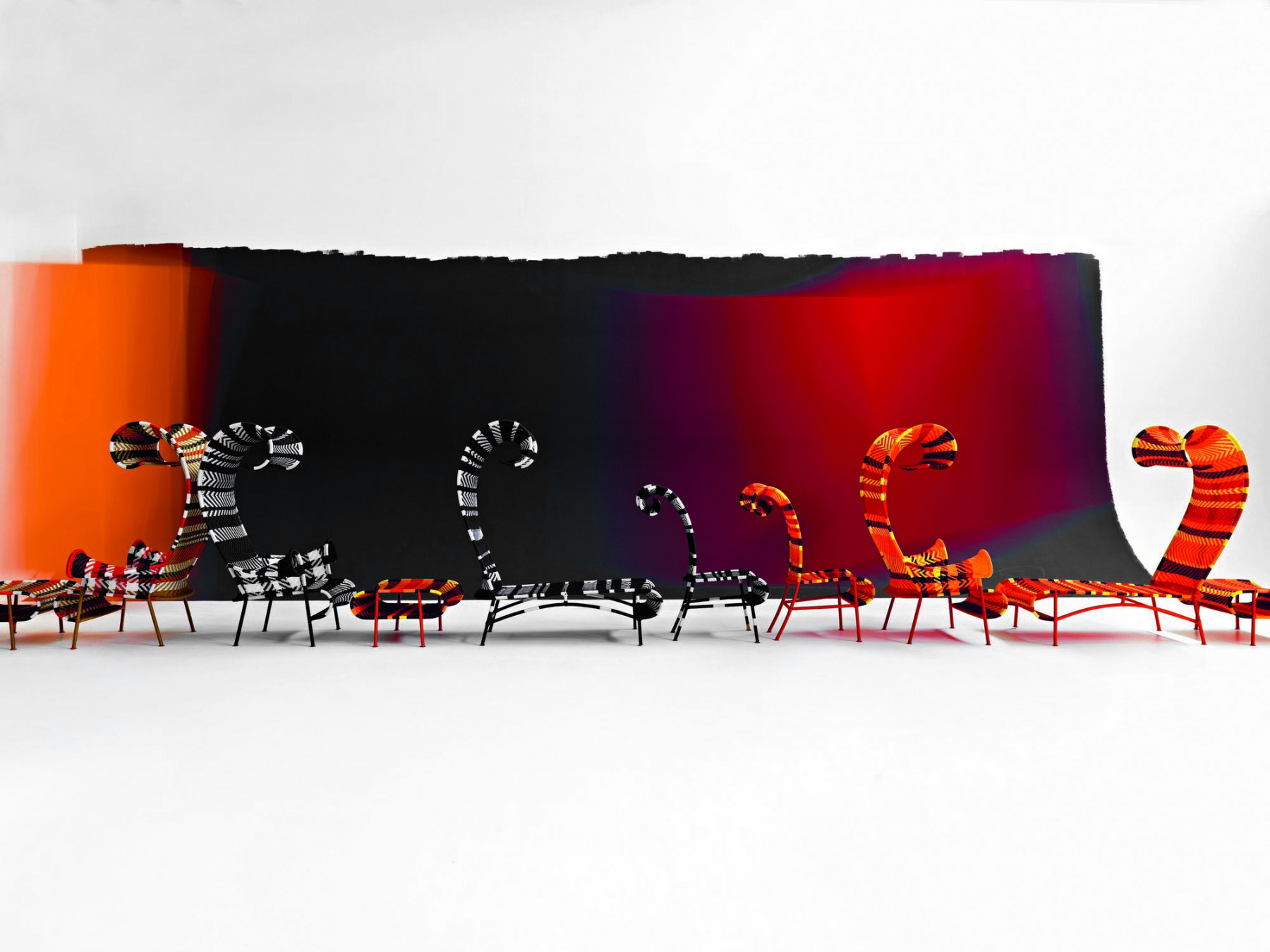 座椅使用通常用于捕鱼网的梭织螺纹, 其设计都是不同的和原始的,就像它们的名字一样。手工工艺, 是人类有缺陷的完美。