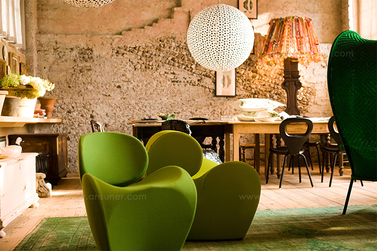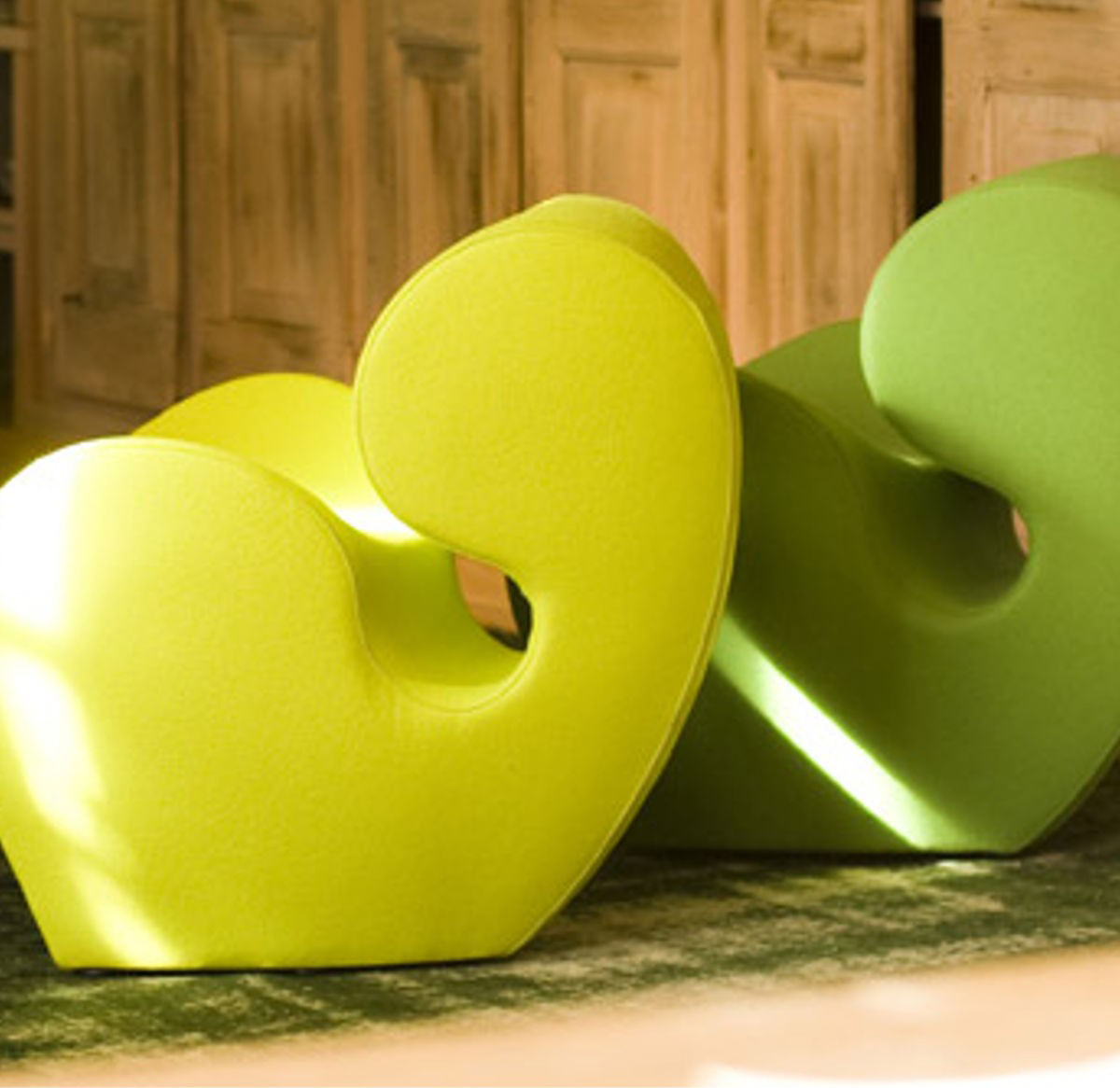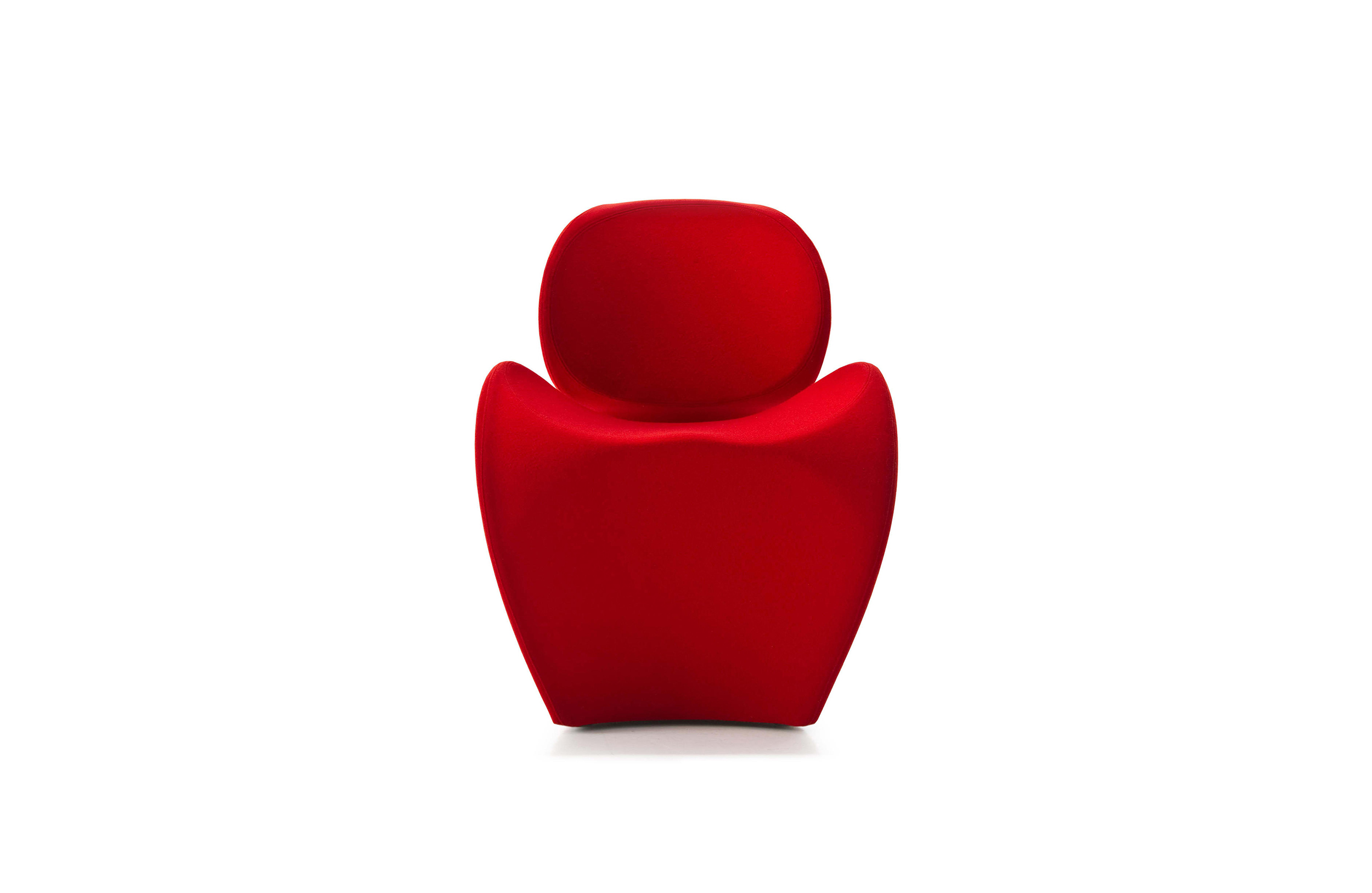 由Ron Arad在1988年设计的一个大的简单的钢椅,展示了一种简单的形式,可以在不影响设计原则的情况下,通过对材料和生产过程的重新解释而被翻译。从建设性的姿态获得的模型变成了工业生产;视觉的柔软和丰满的体积,舒适。更容易探索旋转模制和聚乙烯的使用;在冷泡中柔软的版本,用聚酯纤维包覆,触觉表面的转换;在元素的集合中,形态学和动态形式。