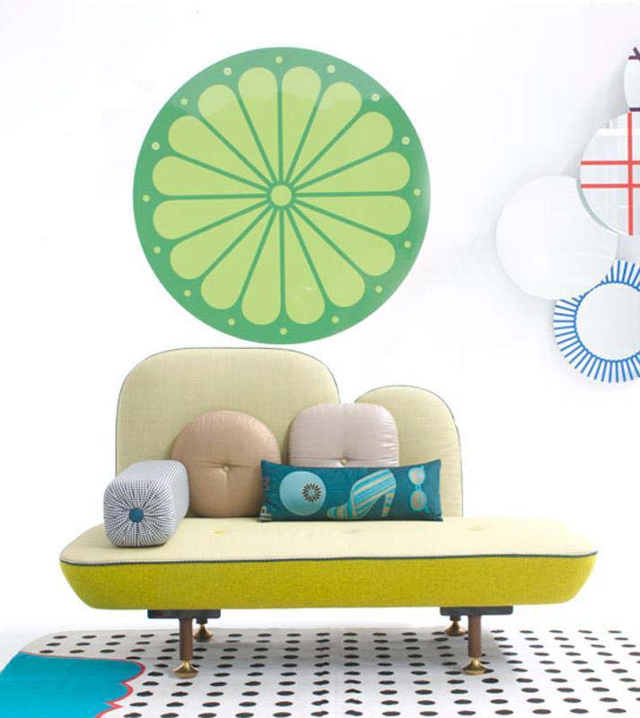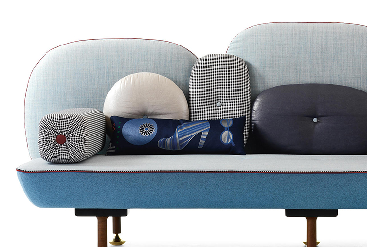 我美丽的背面是一个座椅的集合,它的靠背是由各种形状的高颜色的浮动靠垫组成。座椅越宽,可以使用的垫子就越多。我们使用超大的符号,比如靠垫上的按钮,是一种传递各种信息的方式。这些符号也提供了一种定制椅子的方法,让它变得独一无二,就像你对一件衣服的区别一样。上面的床垫上覆盖着不同的物品,因为他们从一个现代的公主身上得到灵感,他们用金和银镶边。