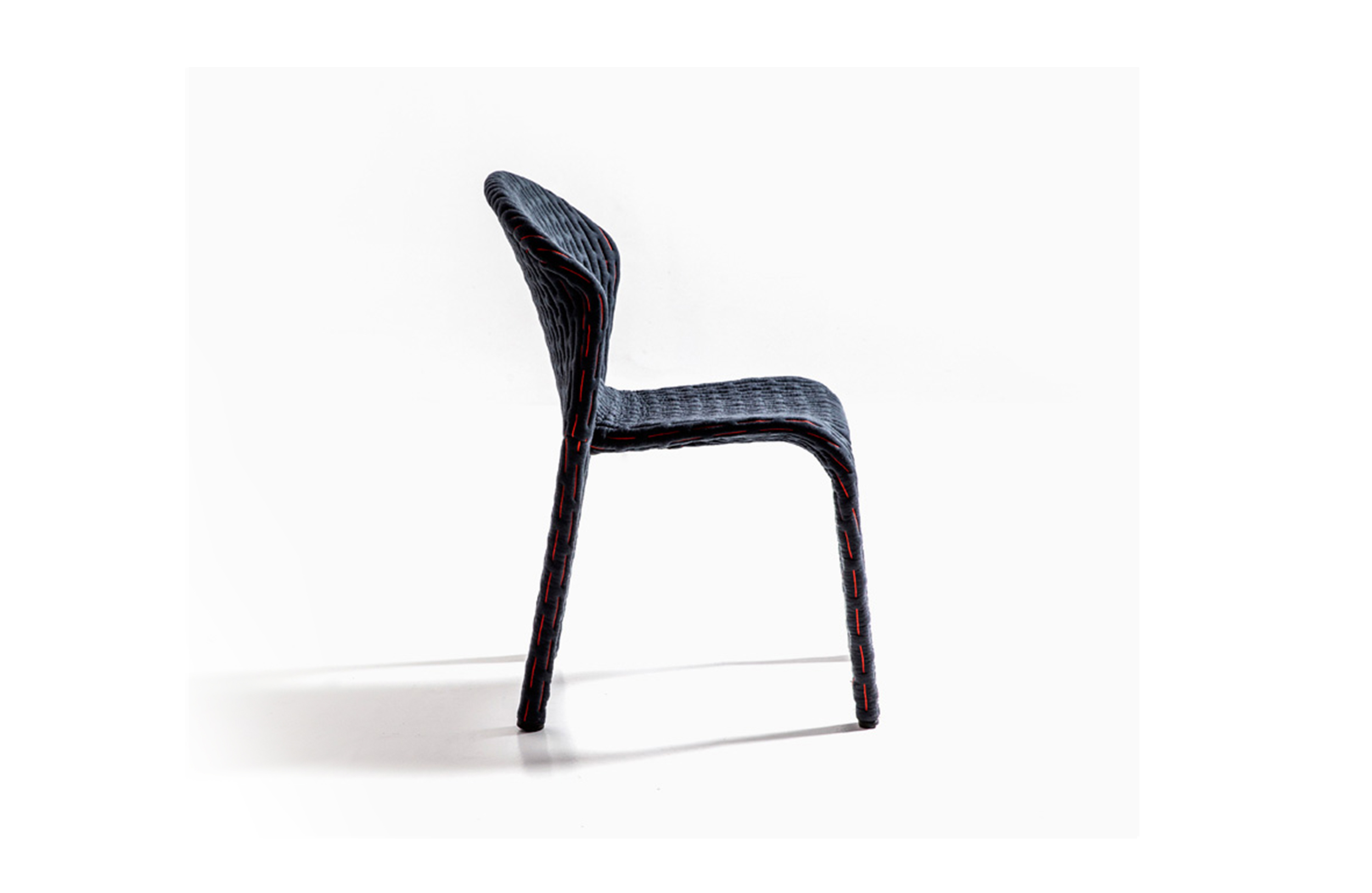 伪装成休闲椅的扶手椅,用他们的外表来控制空间。这主意很简单,用一件有衬垫的大衣盖住金属框架然后把它变成别的东西。一种非常直立的姿势,扶手的形状让人联想到双排扣外套的翻领,而这种相似之处就在中央扣扣上。室内装潢变成了衣服,可以在不过度的情况下,将赤裸的身体转变成一种追求自身内在同一性的物体。