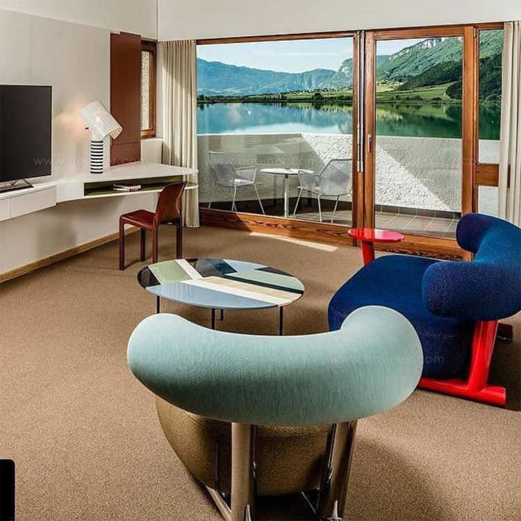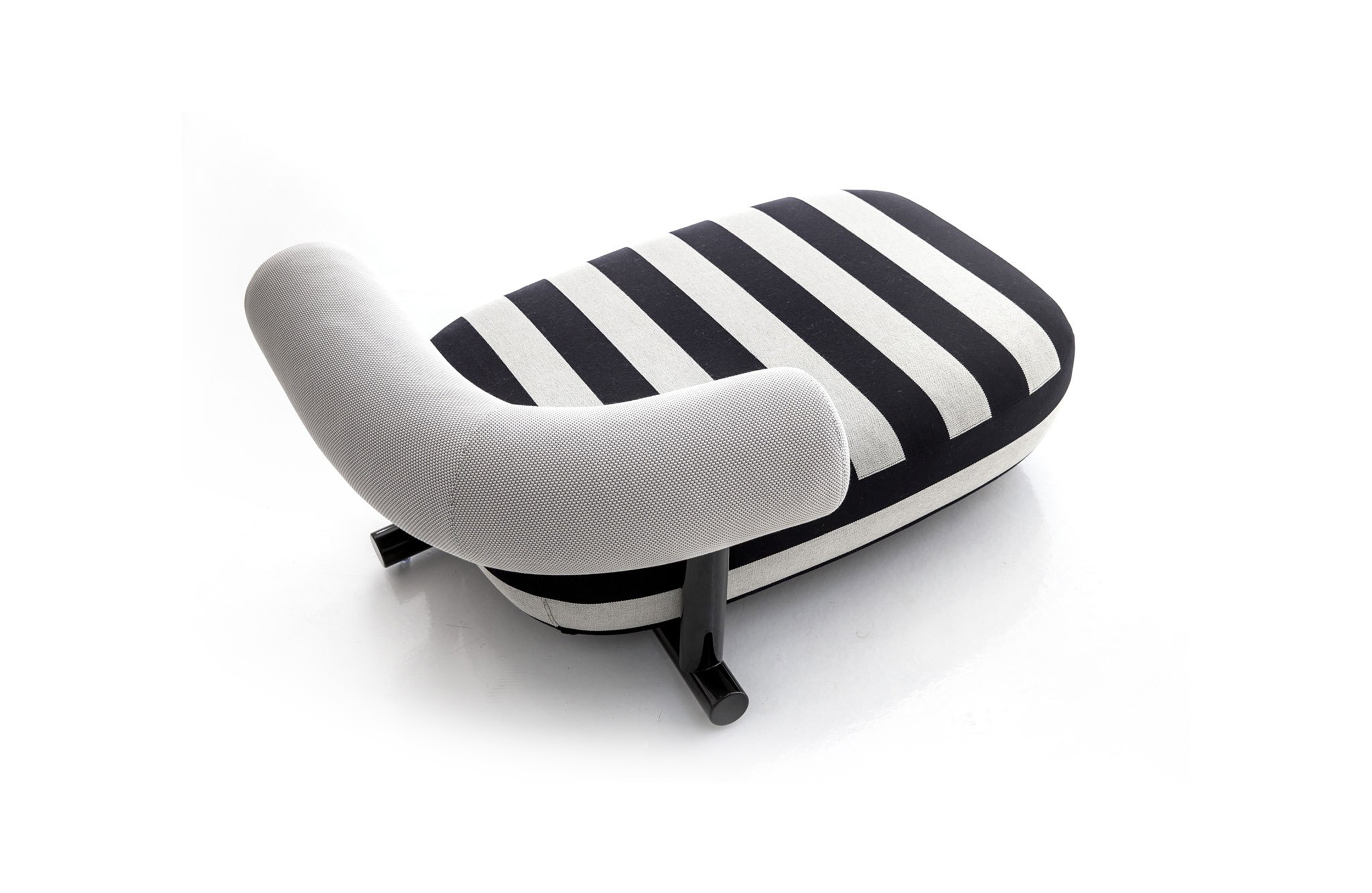 把粗糙放置在精致上面,选择一个与趋势相反的选择,而不是最常见的研究苗条的形式。尽管如此,保持轻盈,空灵。因此,设计是围绕着超大号的最让人放心的方面:简单性。这个极简和坚固的结构是用一个直径80毫米的粉彩铝管建造的。其上有一个带有圆形体形的座垫,这是一个关于充气模块的构思的隐蔽暗示。背面,就像一个大胆的圆括号,承诺给人安慰。它的效果,以及自然的吸引力,都是令人愉悦的圆润,随意而轻的。