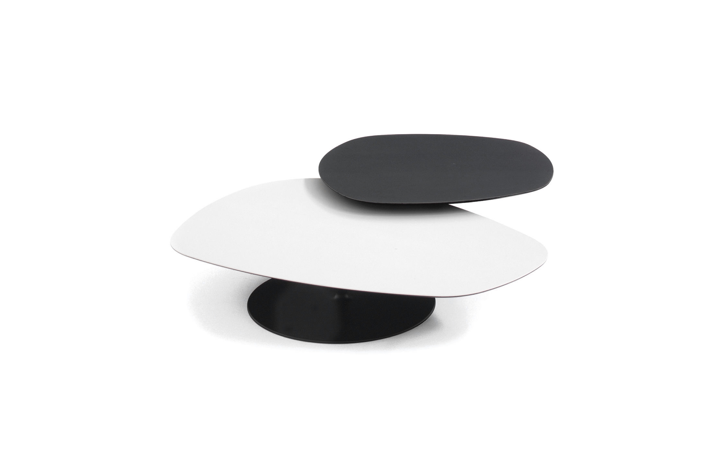 两张桌子,水平的表面,如有机形体的二维投影,相互滑动,重叠。结果是一种不均匀且和谐的结构,由地板的材料和颜色的选择而增强。菲尼克斯,名字来源于阿拉伯神话中的不死鸟,在火焰中死去,从灰烬中涅槃,没有任何痕迹;更确切地说,是科幻小说——《星际迷航》中的“菲尼克斯号”。
