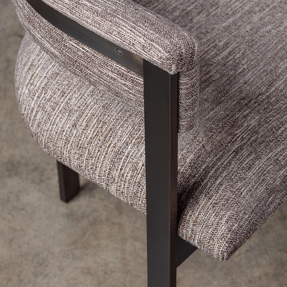 标志性的Elliot椅结合了简洁的线条和经典的乡土风格。这款餐椅或休闲椅的特点是配有一对黄铜吧台腿,要么是抛光黄铜,要么是油光锃亮的黄铜。 座椅有各种精选面料和皮革可供选择。