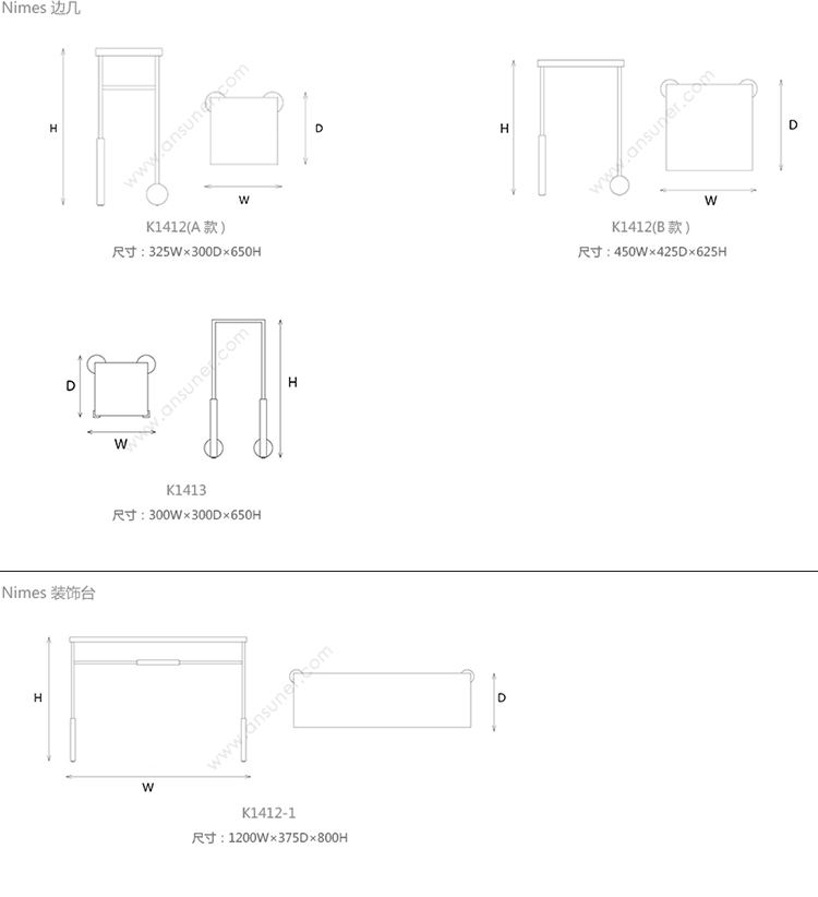 Nimes 装饰台 系列尺寸/示意图