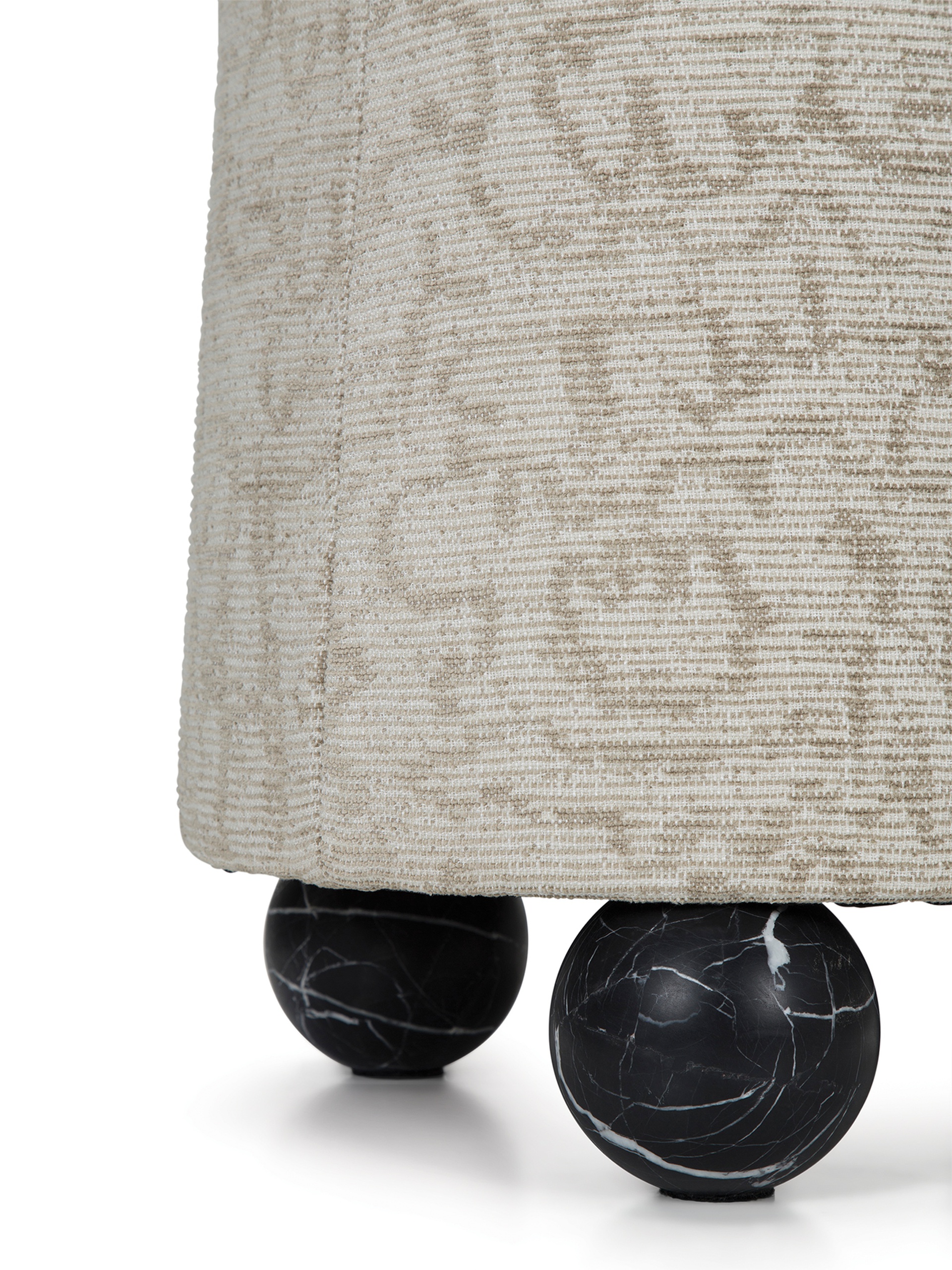这款精致的凳子具有柔软的倒锥形,并在三个坚固的大理石球体上轻轻平衡。 Selma Stool非常适合作为小型脚踏在客厅。 大理石脚使凳子具有相当大的视觉重量,但仍然可以轻松移动。 提供精选的精选面料和皮革。