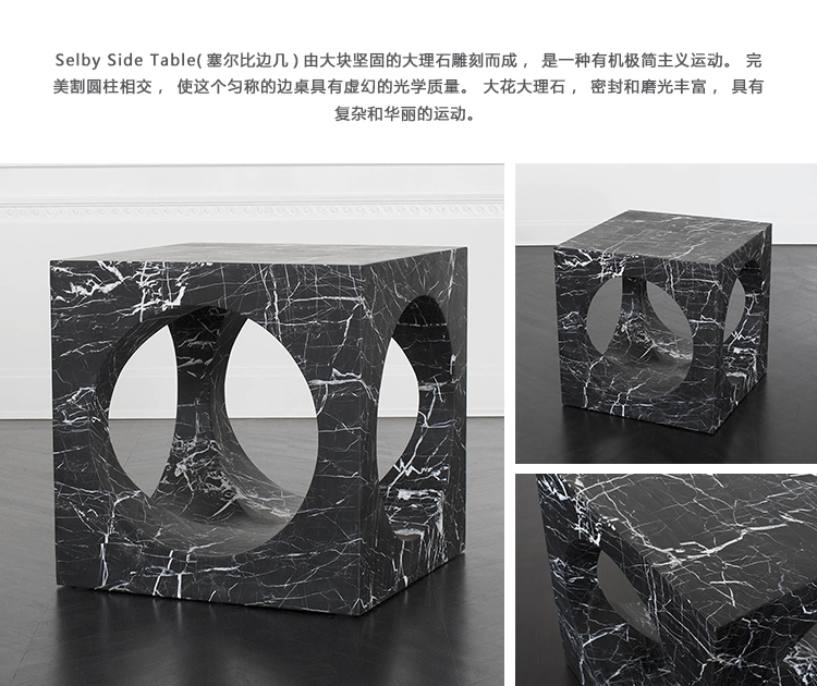 Selby Side Table(塞尔比边几)由大块坚固的大理石雕刻而成,是一种有机极简主义运动。 完美切割圆柱相交,使这个匀称的边桌具有虚幻的光学质量。 大花大理石,密封和磨光丰富,具有复杂和华丽的运动。