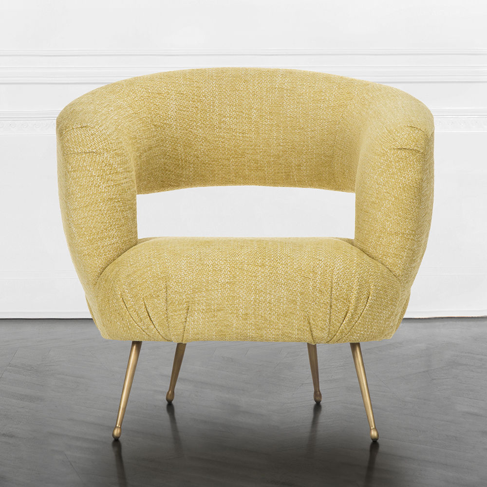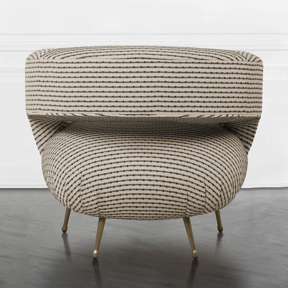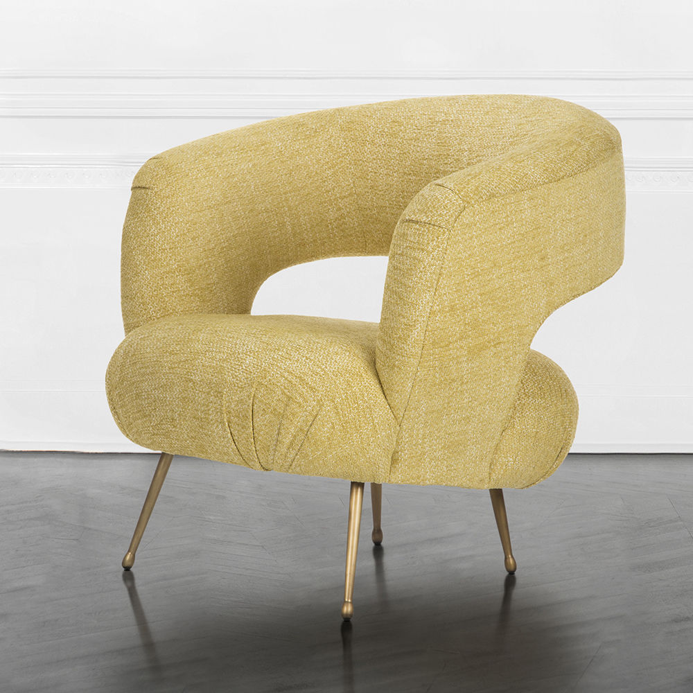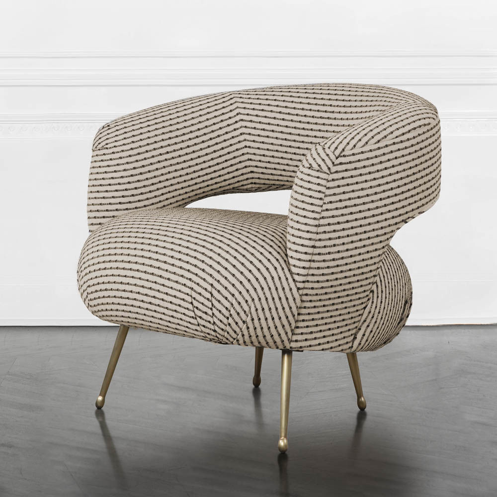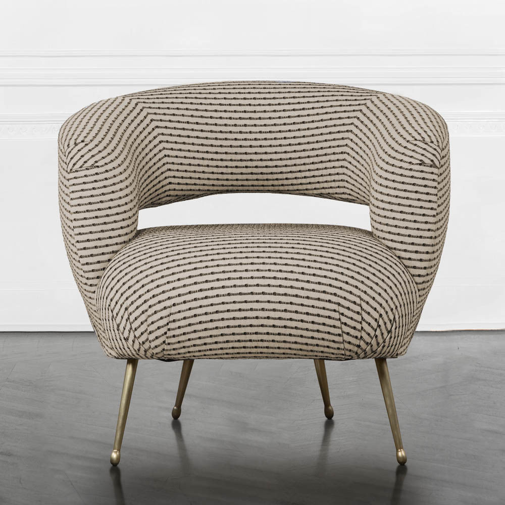 Laurel休闲椅采用醒目的开背,紧凑的软垫座椅和柔和的圆润轮廓。 它位于抛光黄铜的锥形铸造黄铜腿上。 非常舒适,适合休闲。 硬木框架采用双层细木工制成,可延长使用寿命。 提供精选的精选面料和皮革。