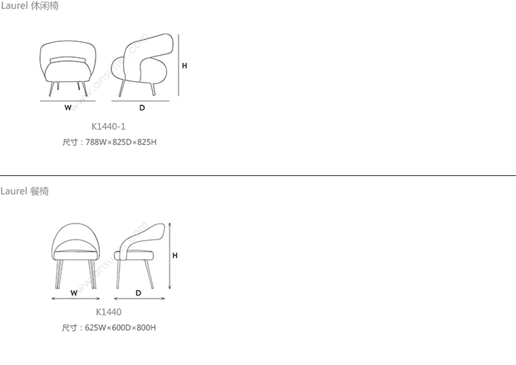 Laurel 休闲椅 系列尺寸/示意图