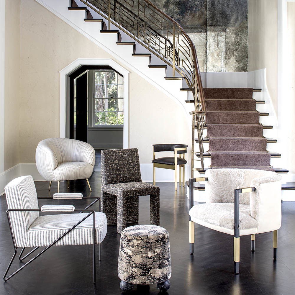Thayer椅子是第一个完全软垫的餐椅,具有简单的图形魅力。 宽阔的前腿和坚固的后背为这款舒适的用餐或偶尔的椅子增添了建筑精神。 硬木框架采用双层细木工制成,可延长使用寿命。