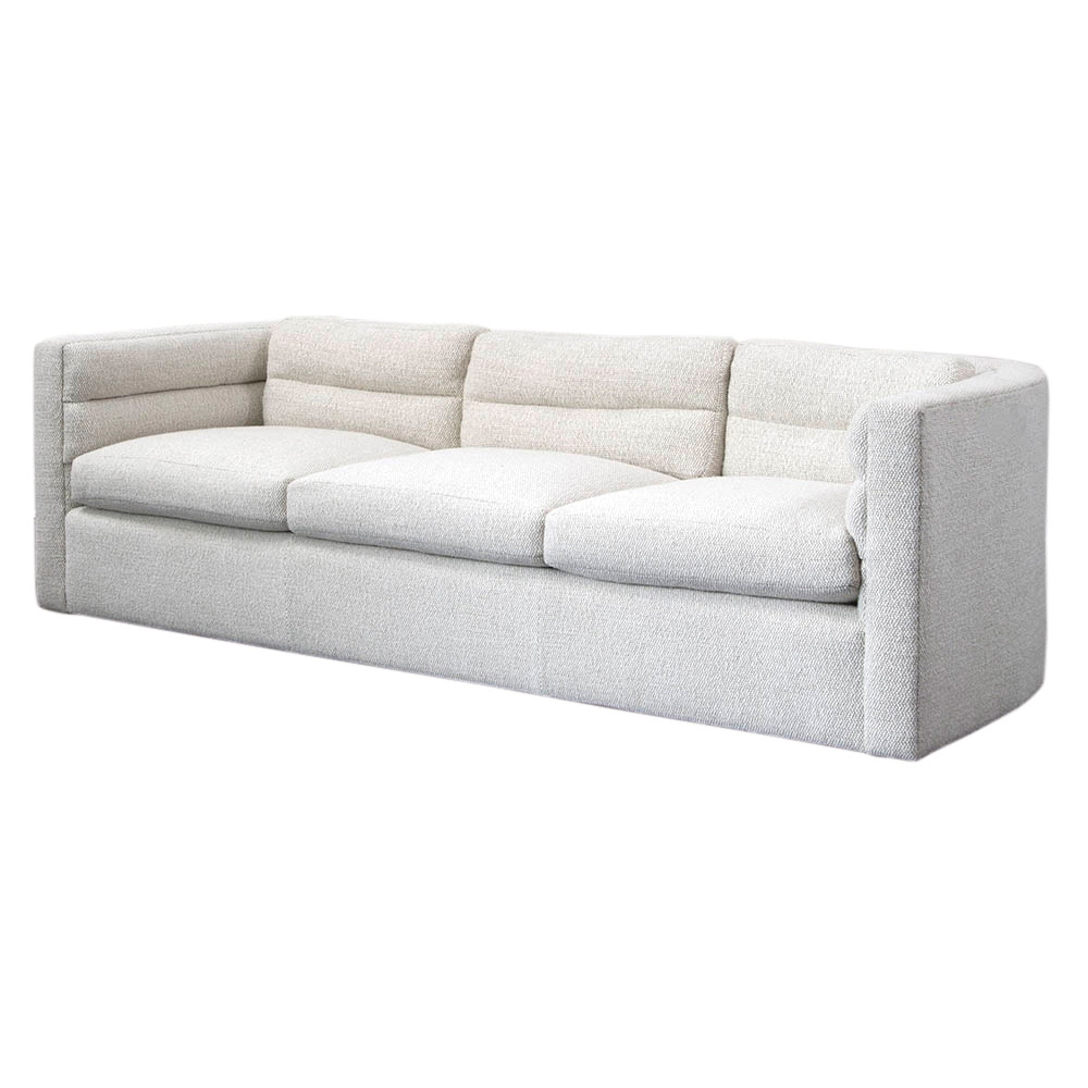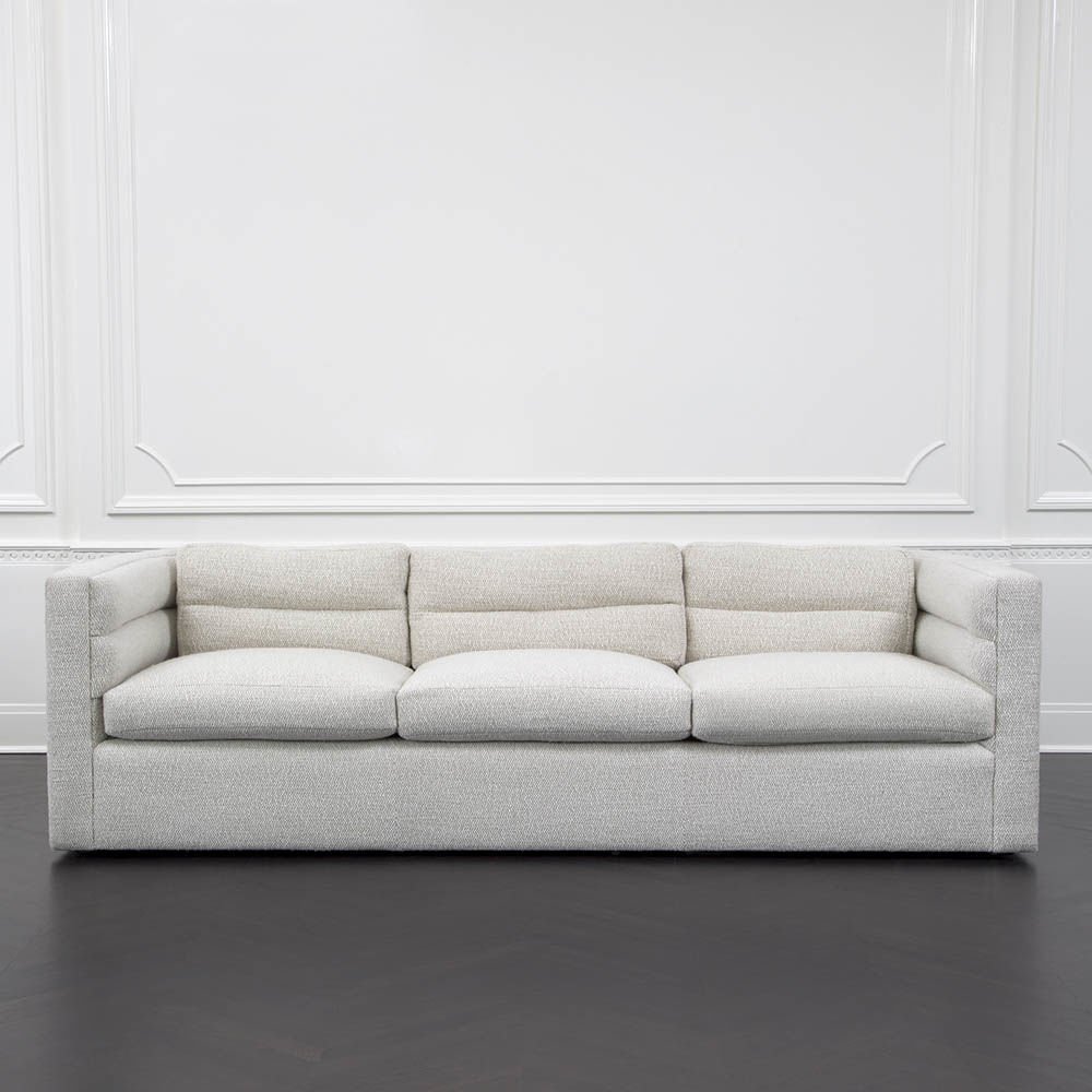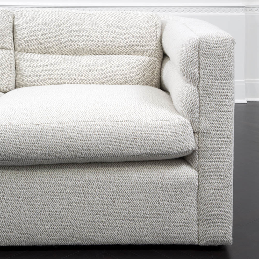 这款经典的扶手沙发采用柔软弧形靠背设计,整个过程中都有标志性的定制通道细节。 三个松散的靠垫和三个座垫使用10/90混合的鸭绒和羽毛,以延长寿命和极致舒适。 腿部采用低嵌入式木结构,使轮廓能够漂浮在地面上方。 硬木框架采用双向榫钉,配有8向手动弹簧,经久耐用,性能卓越。