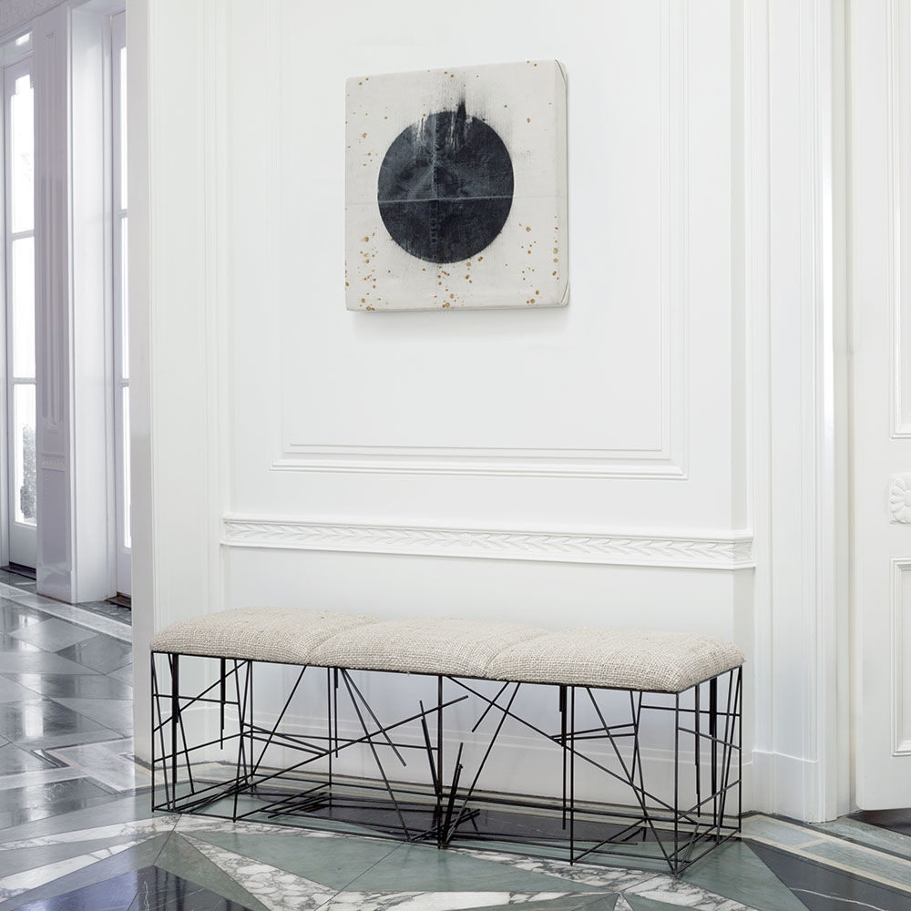 Turmont长凳是一款大胆的图形座椅,采用光泽的黑钢制成。 三个低调的座垫提供舒适性,而不会打破这个雕塑座的戏剧性线条。