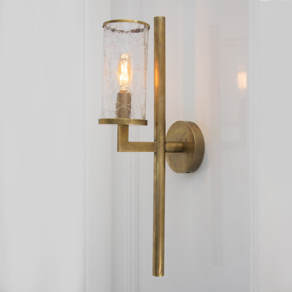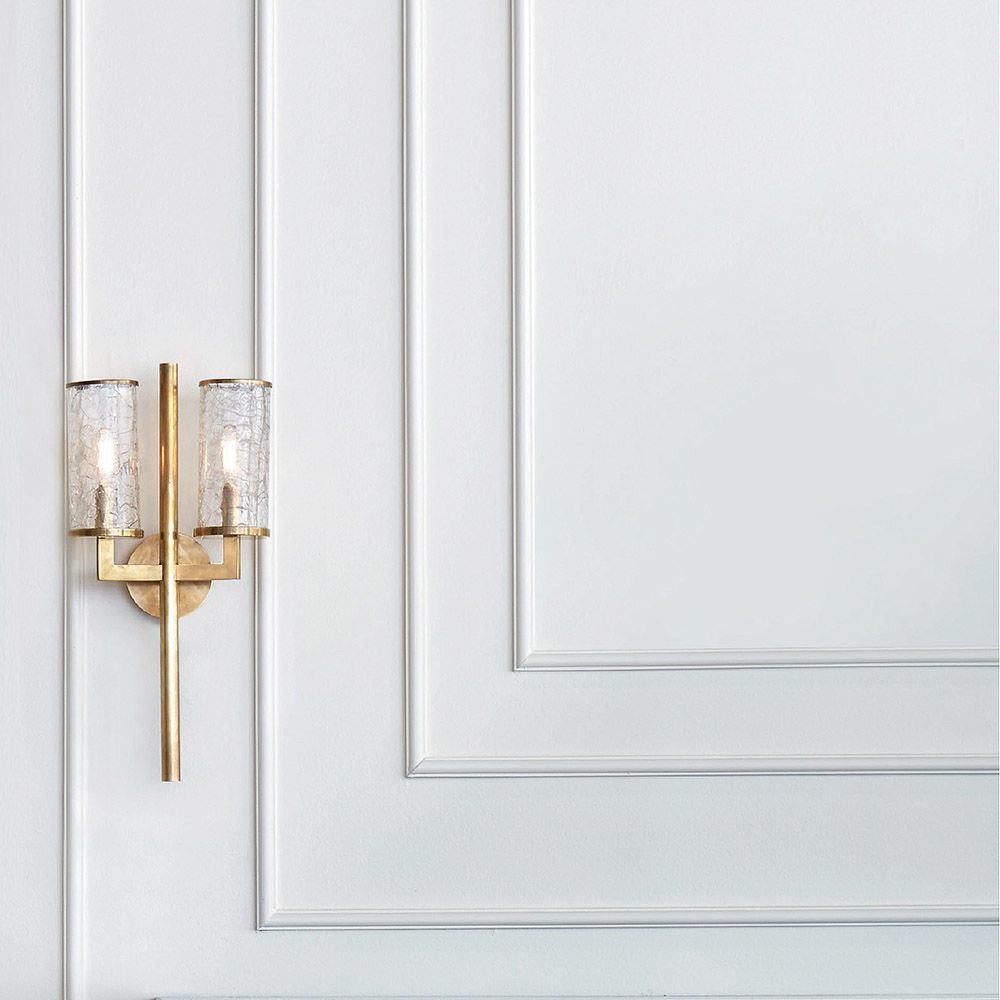 Liaison壁灯以其干净的建筑金属细节和破碎玻璃的动态美感,模糊了现代和经典的线条。 该壁灯适用于室内和室外空间,可提供古董抛光黄铜,青铜和抛光镍。