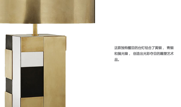 这款独特醒目的台灯结合了黄铜,青铜和抛光镍,创造出光彩夺目的雕塑艺术品。