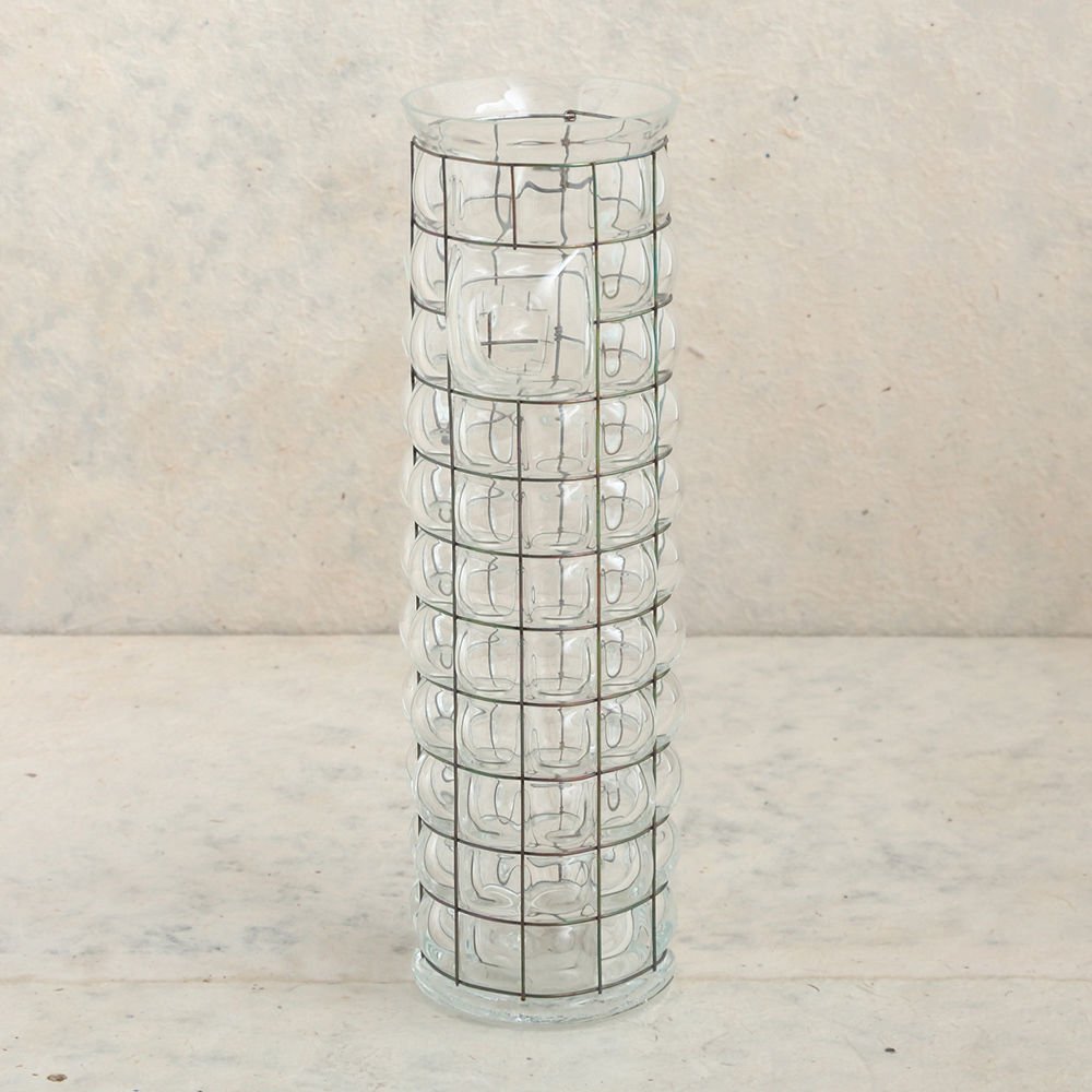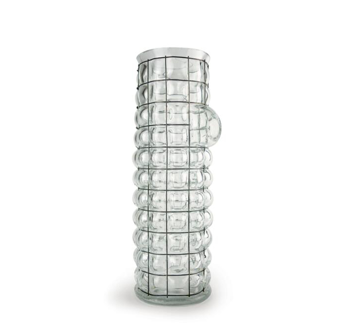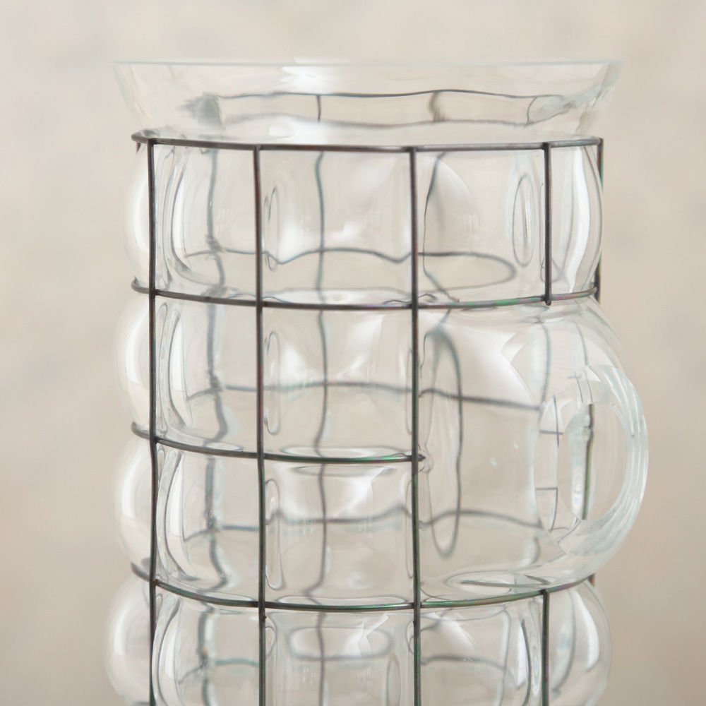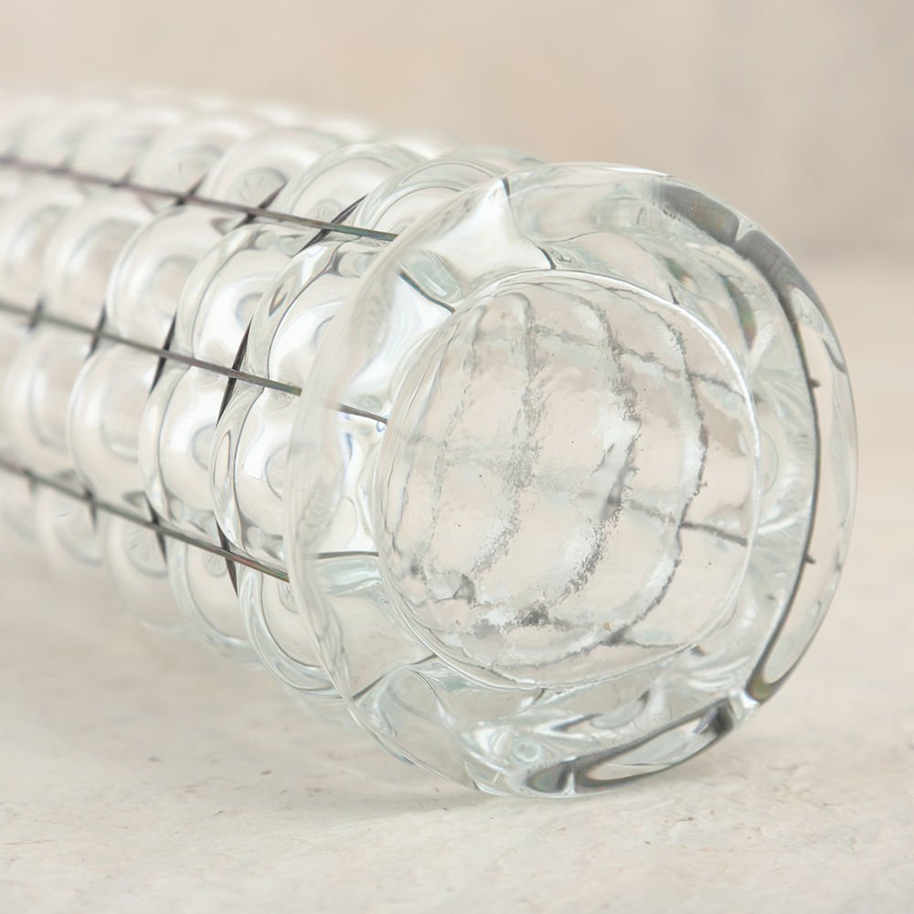 这款冰壶是由手工吹制的玻璃制成,上面绑着一根破旧的金属丝。